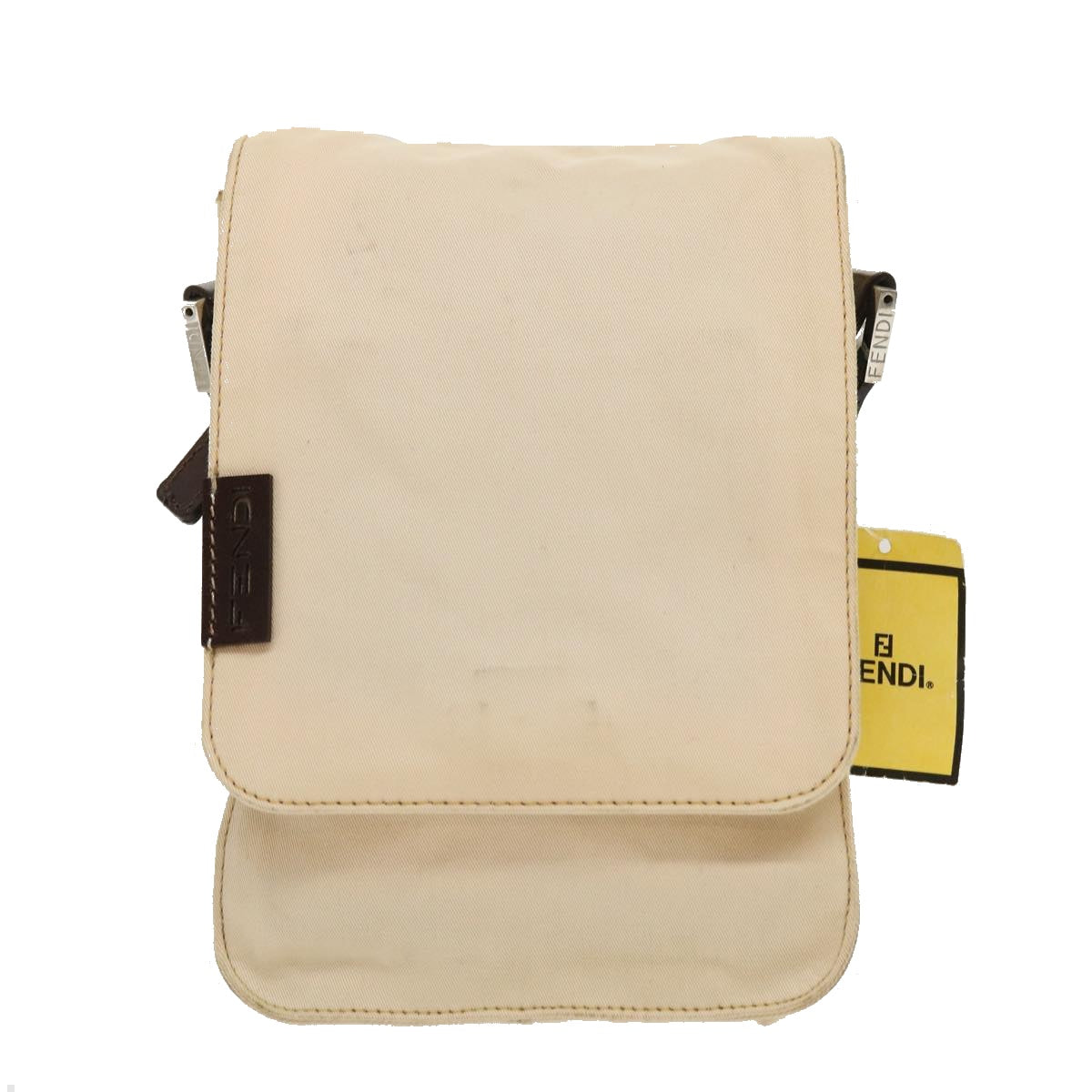 FENDI Shoulder Bag Pouch Canvas Beige Auth ar6924
