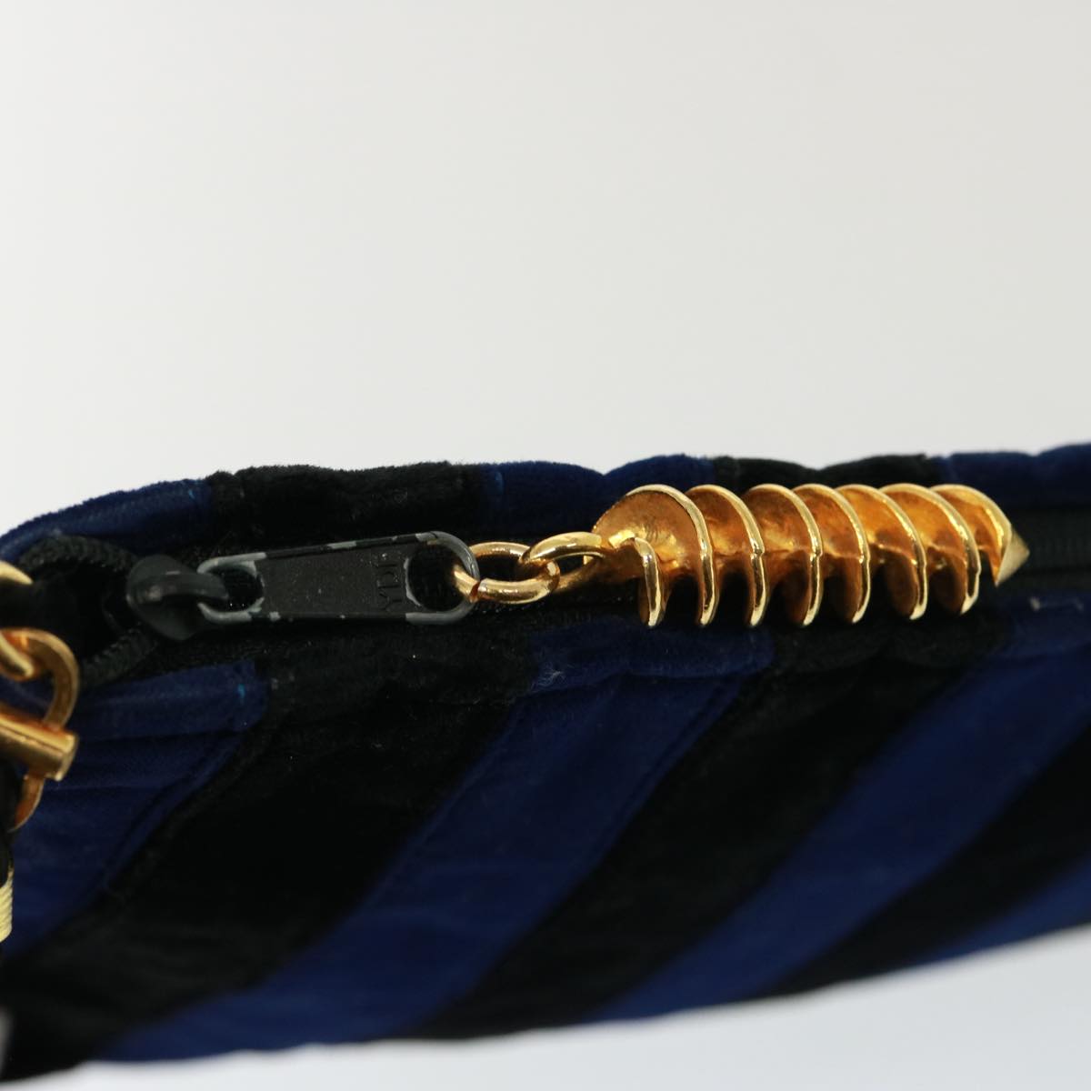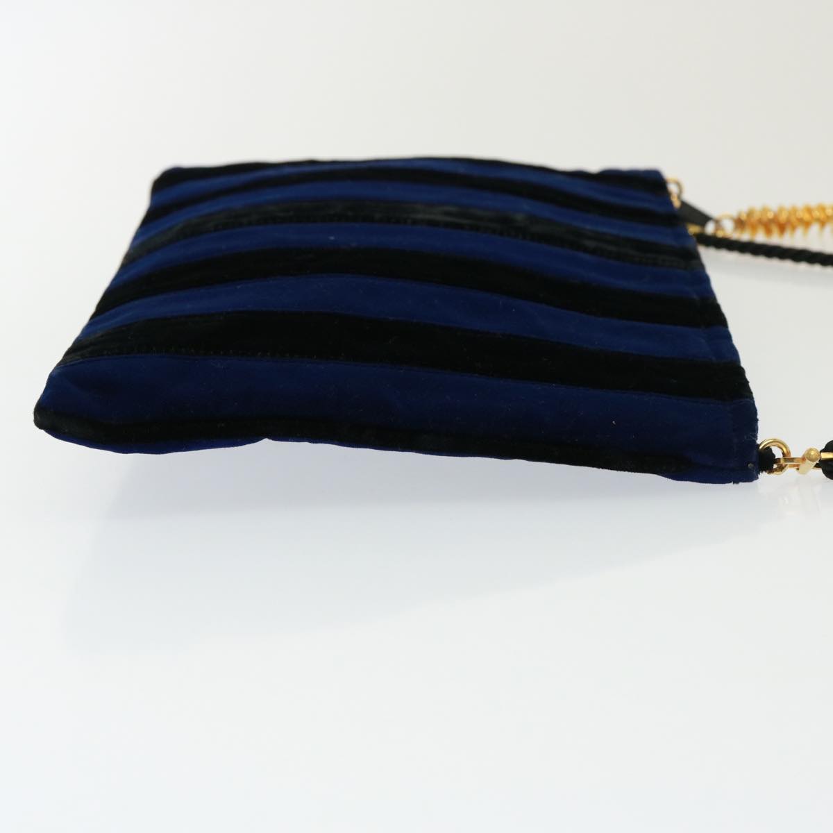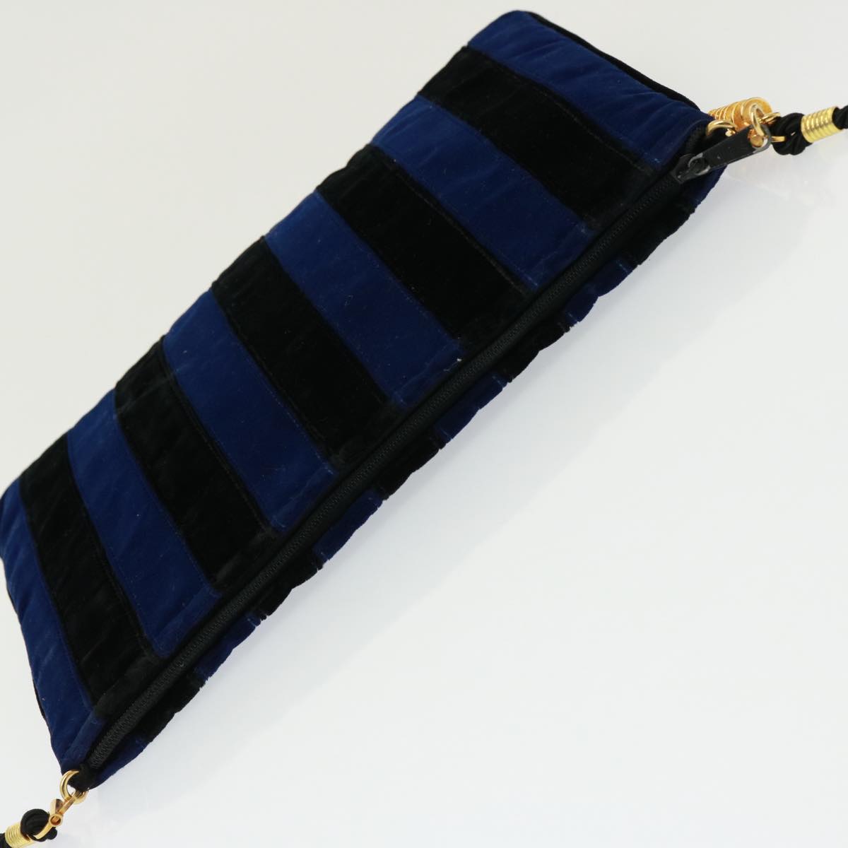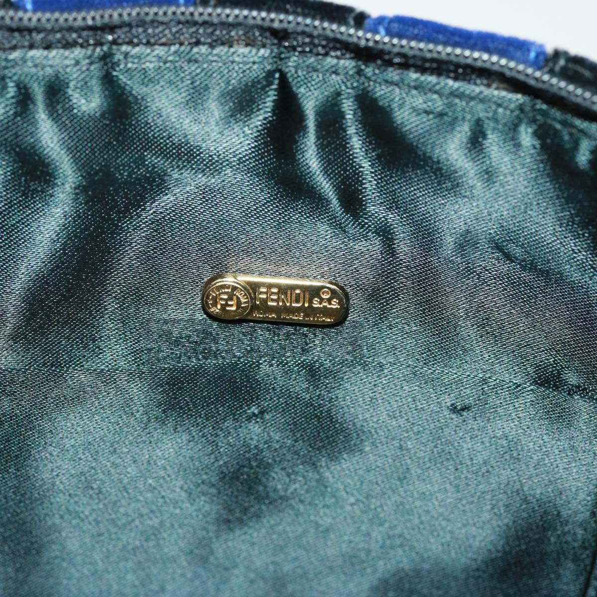 FENDI Shoulder Bag Velor Blue Black Auth 79448