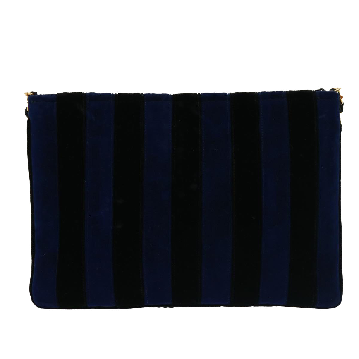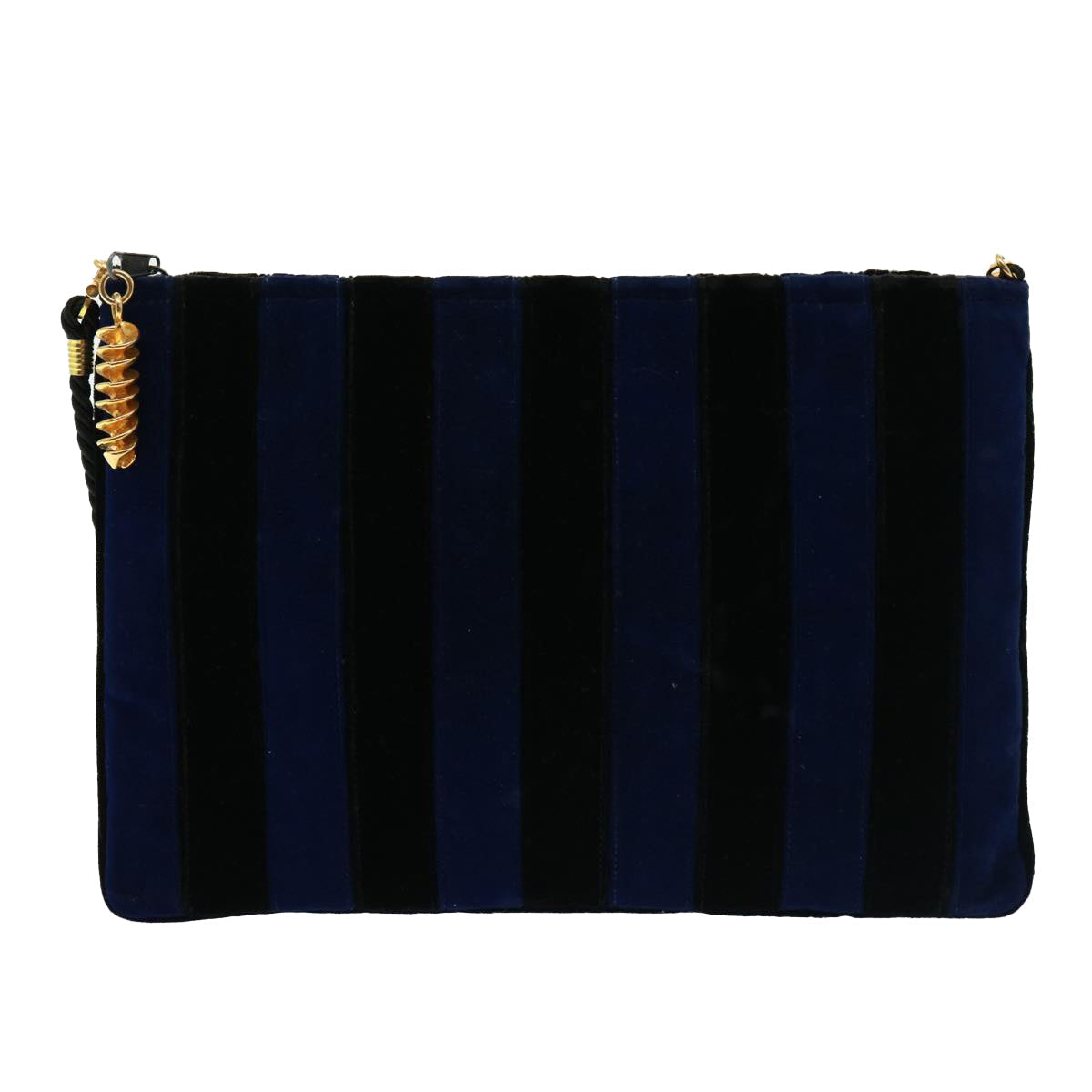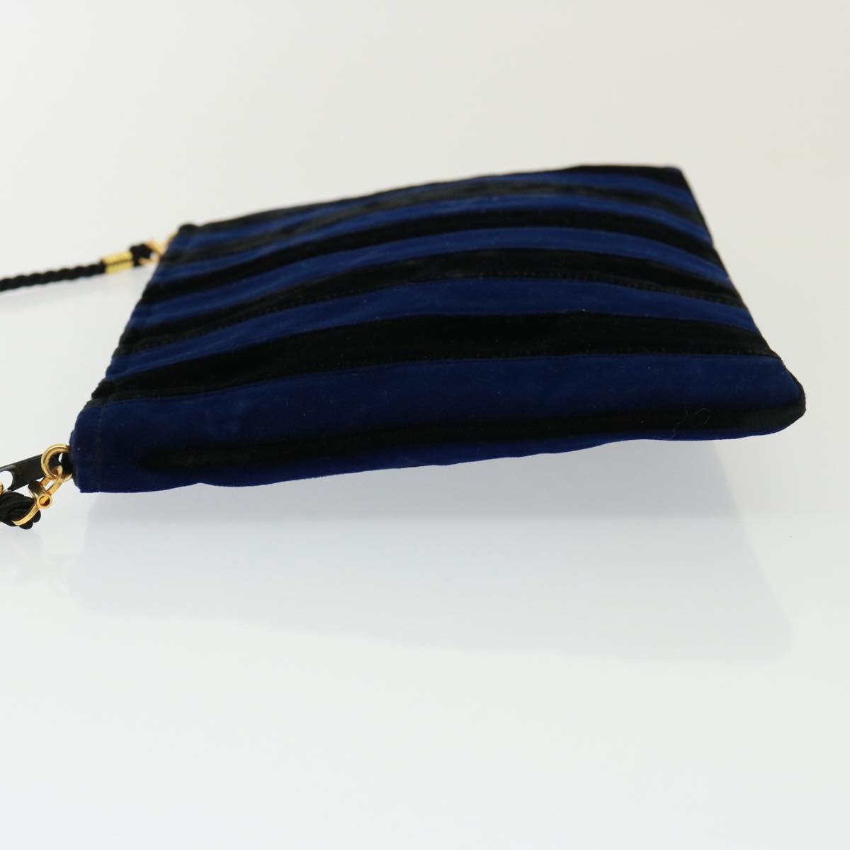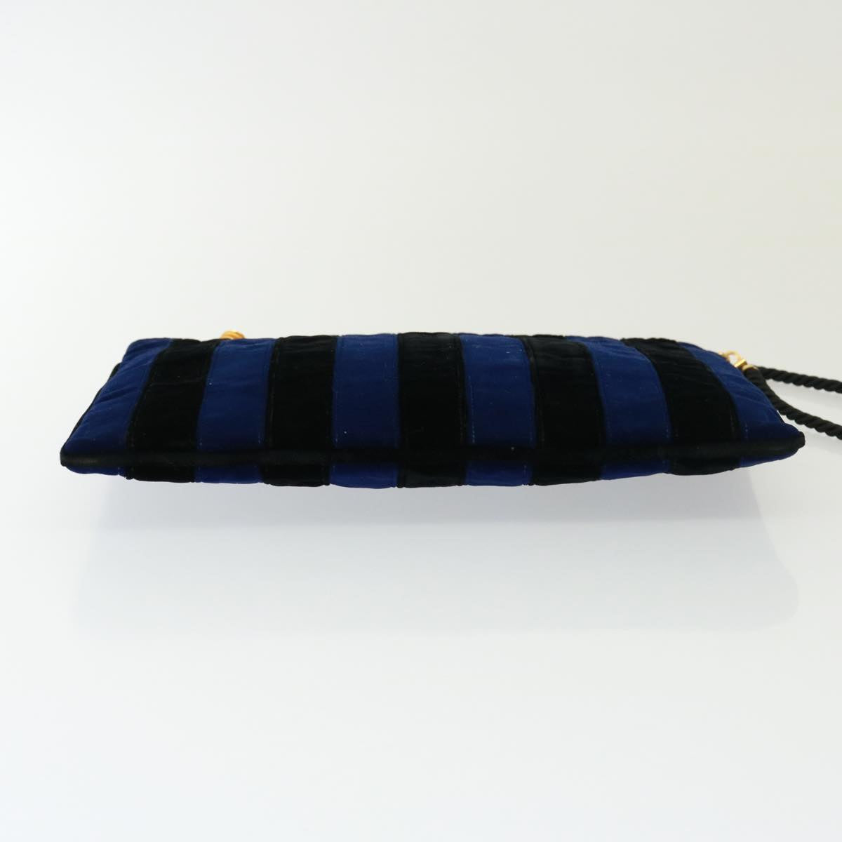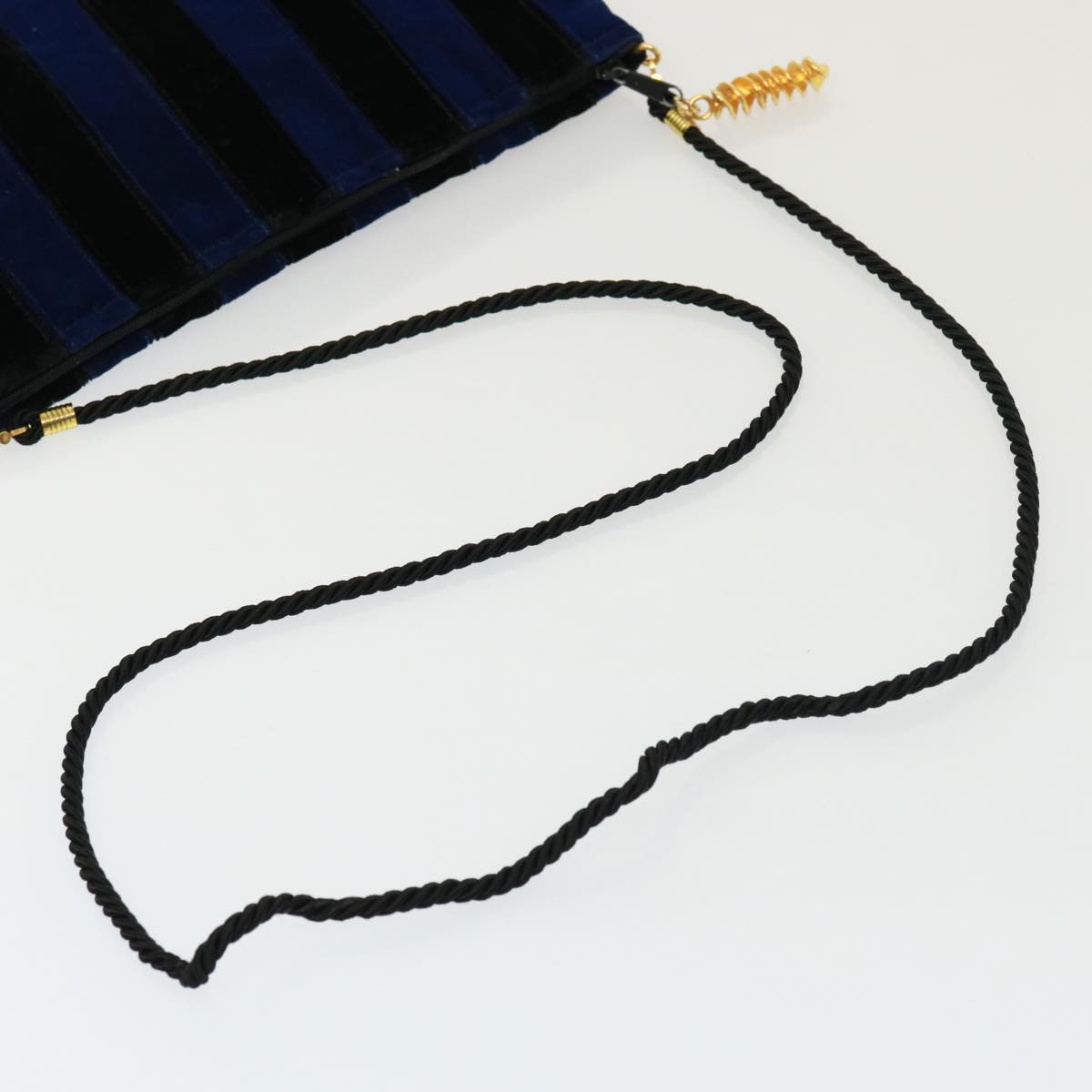 FENDI Shoulder Bag Velor Blue Black Auth 79448