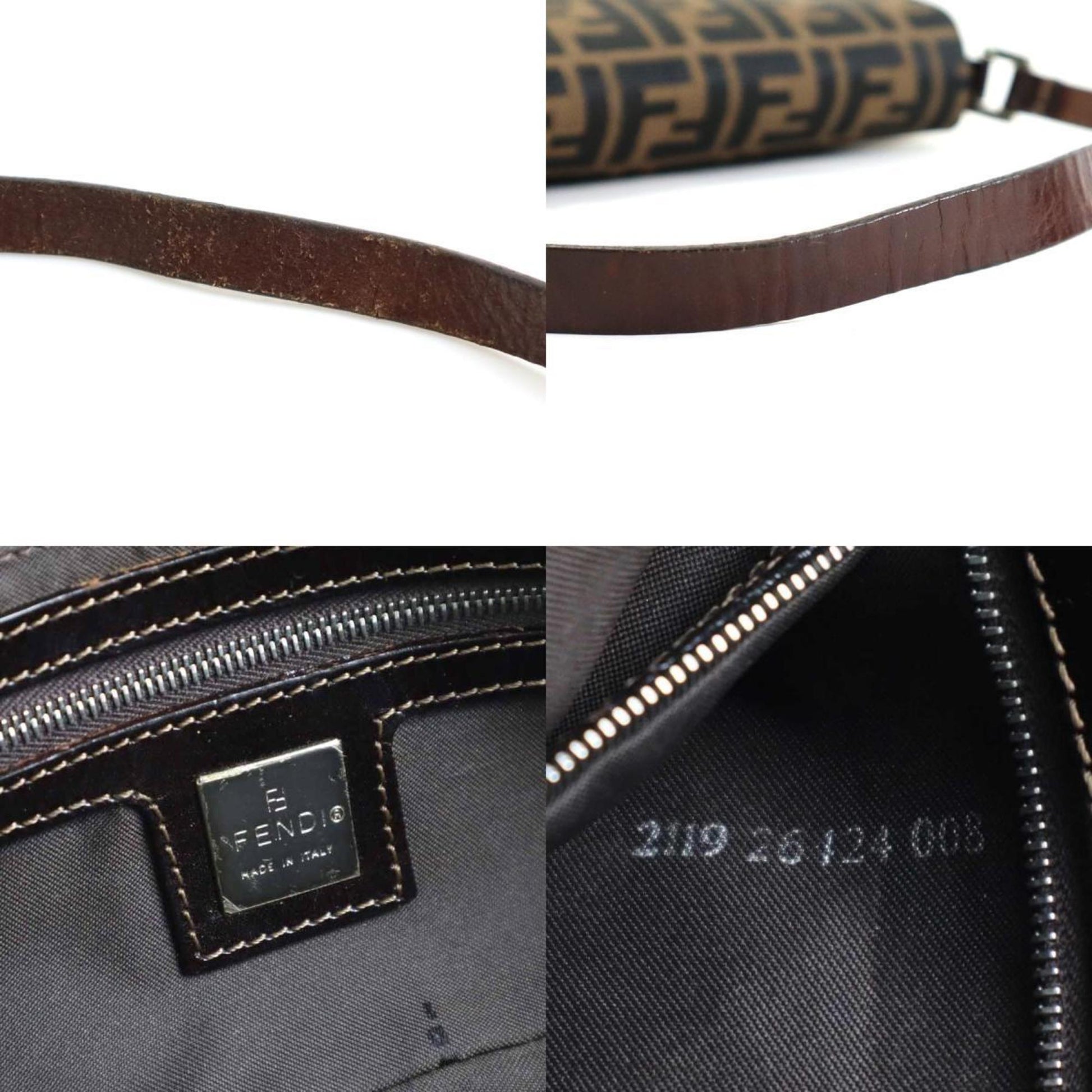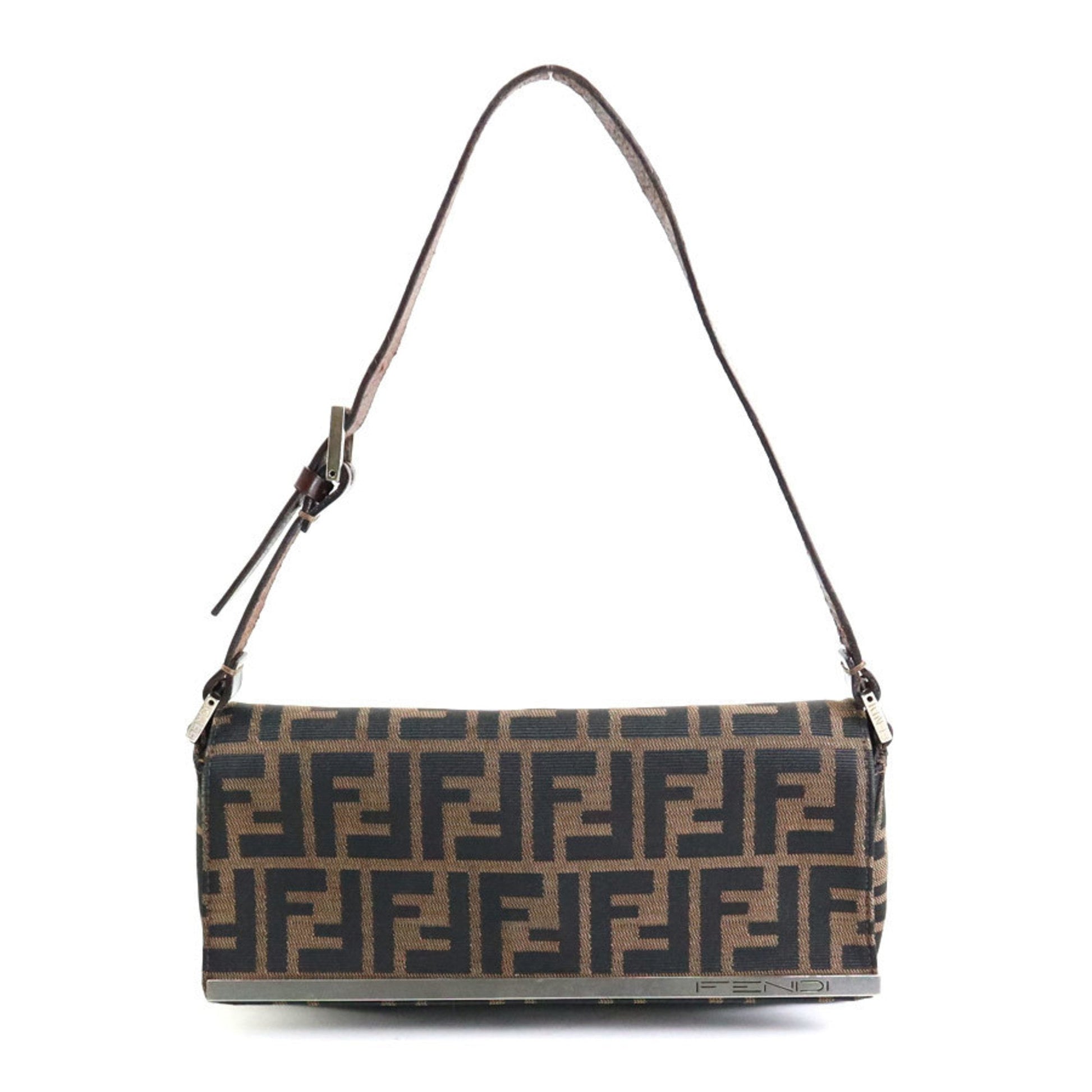 FENDI Shoulder Bag Zucca Canvas/Leather Brown Silver Ladies