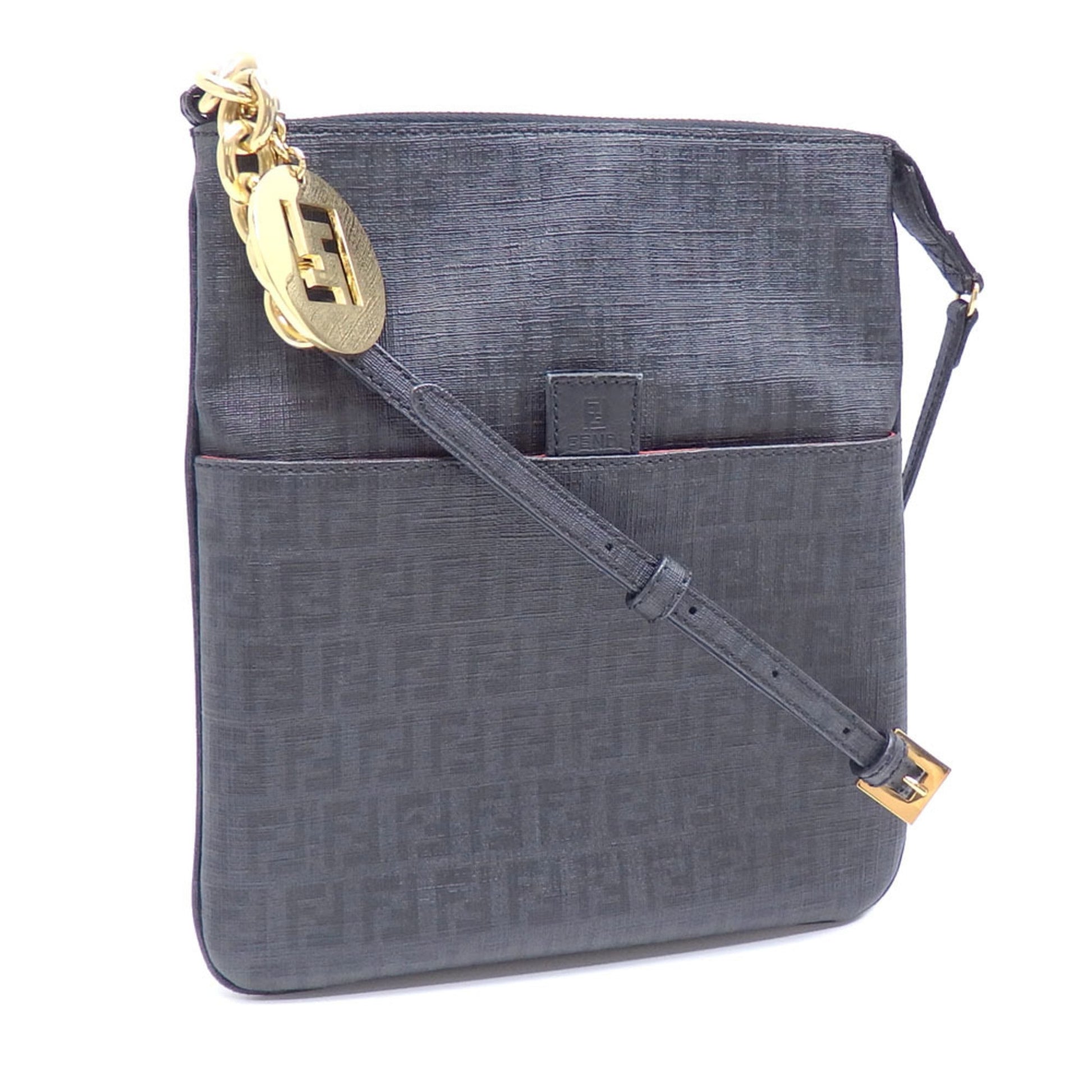 FENDI Shoulder Bag Zucchino Ladies Black PVC 8BT150 Zucca