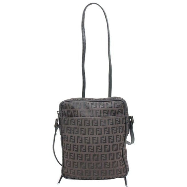 Fendi Shoulder Or Purse Blackbrown Zucchino Print Leather And Canvas Cross Body Bag