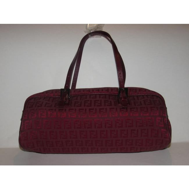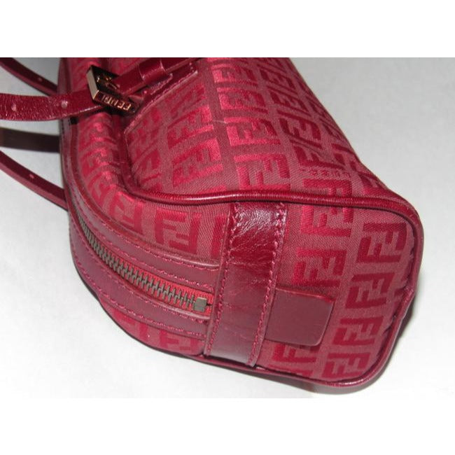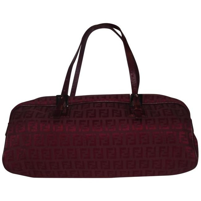 Fendi Shoulder Pursesdesigner Purses Dark Red Zucchinorose Gold Canvas And Leather Satchel