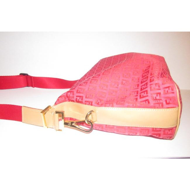 Fendi Shoulder Zucchino Cross Body Redpink Printcamel Canvas And Leather Hobo Bag
