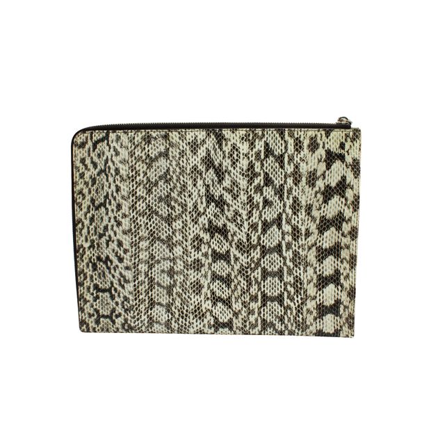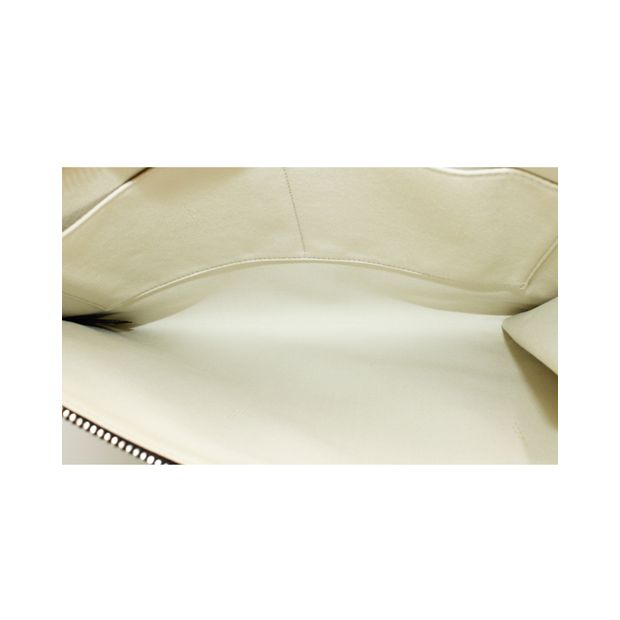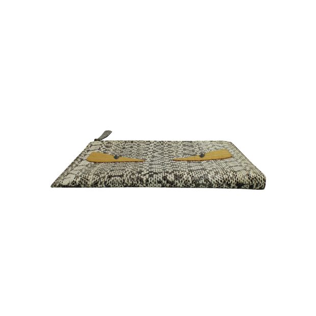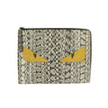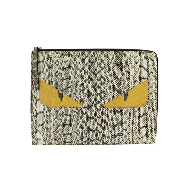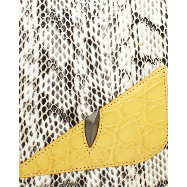 Made in Italy, one minimal brownish stain on one "eye", embossed leather, canvas lining inside.