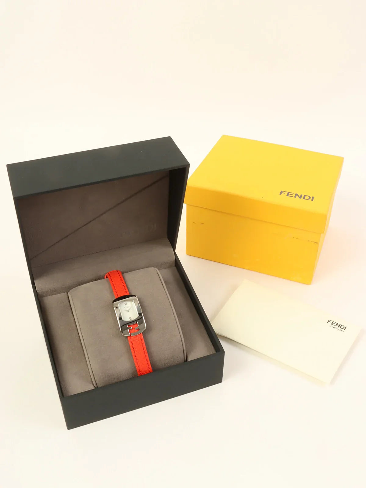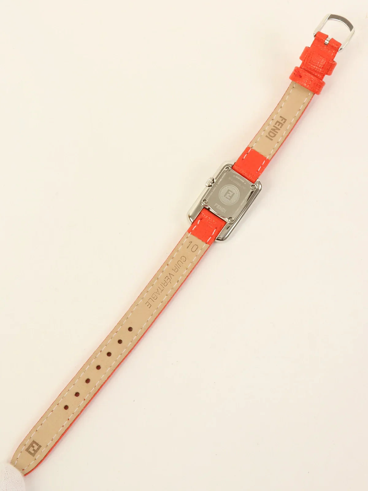 FENDI Square 2P Diamond Logo Face Watch Silver/Red