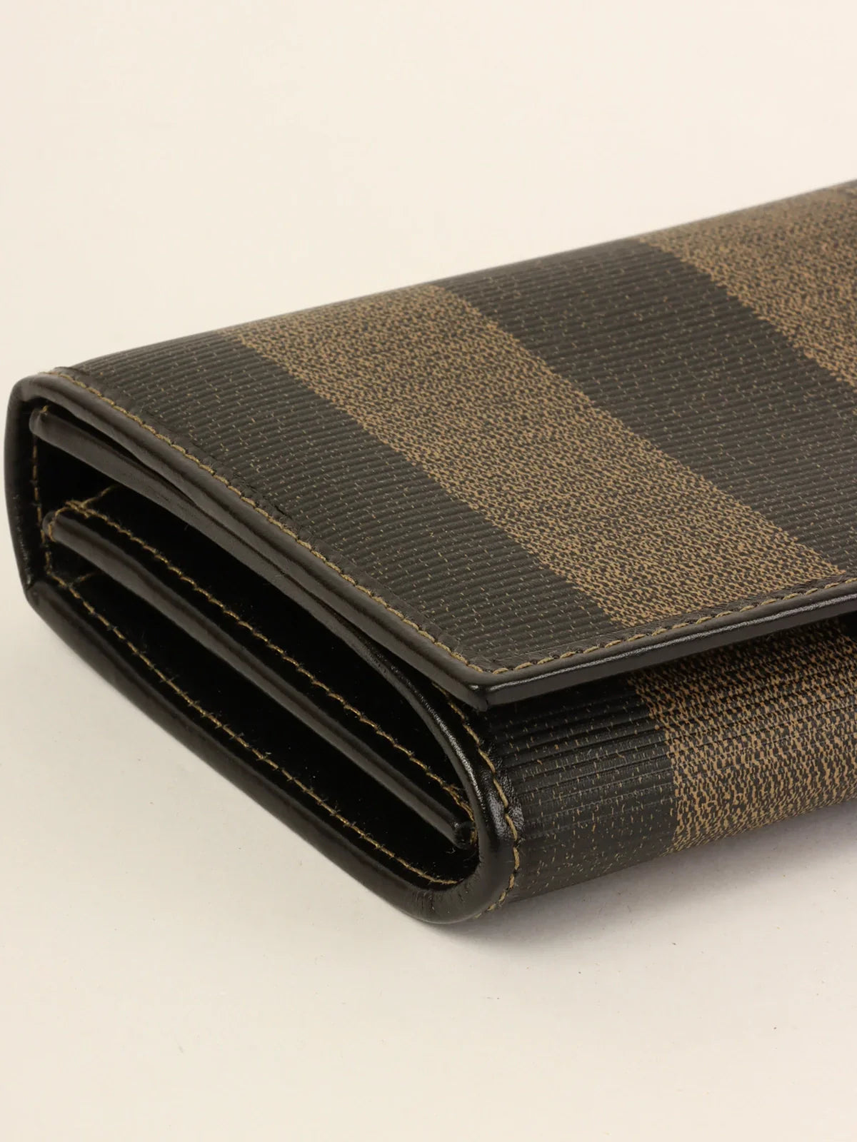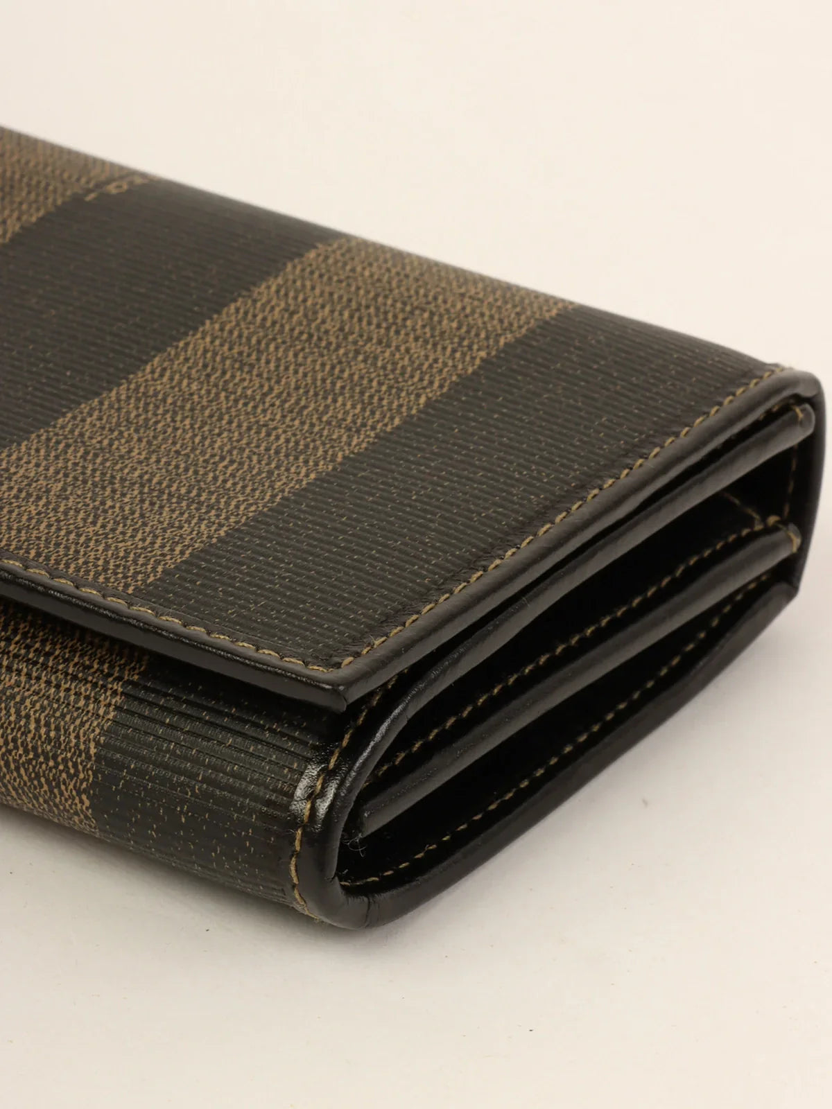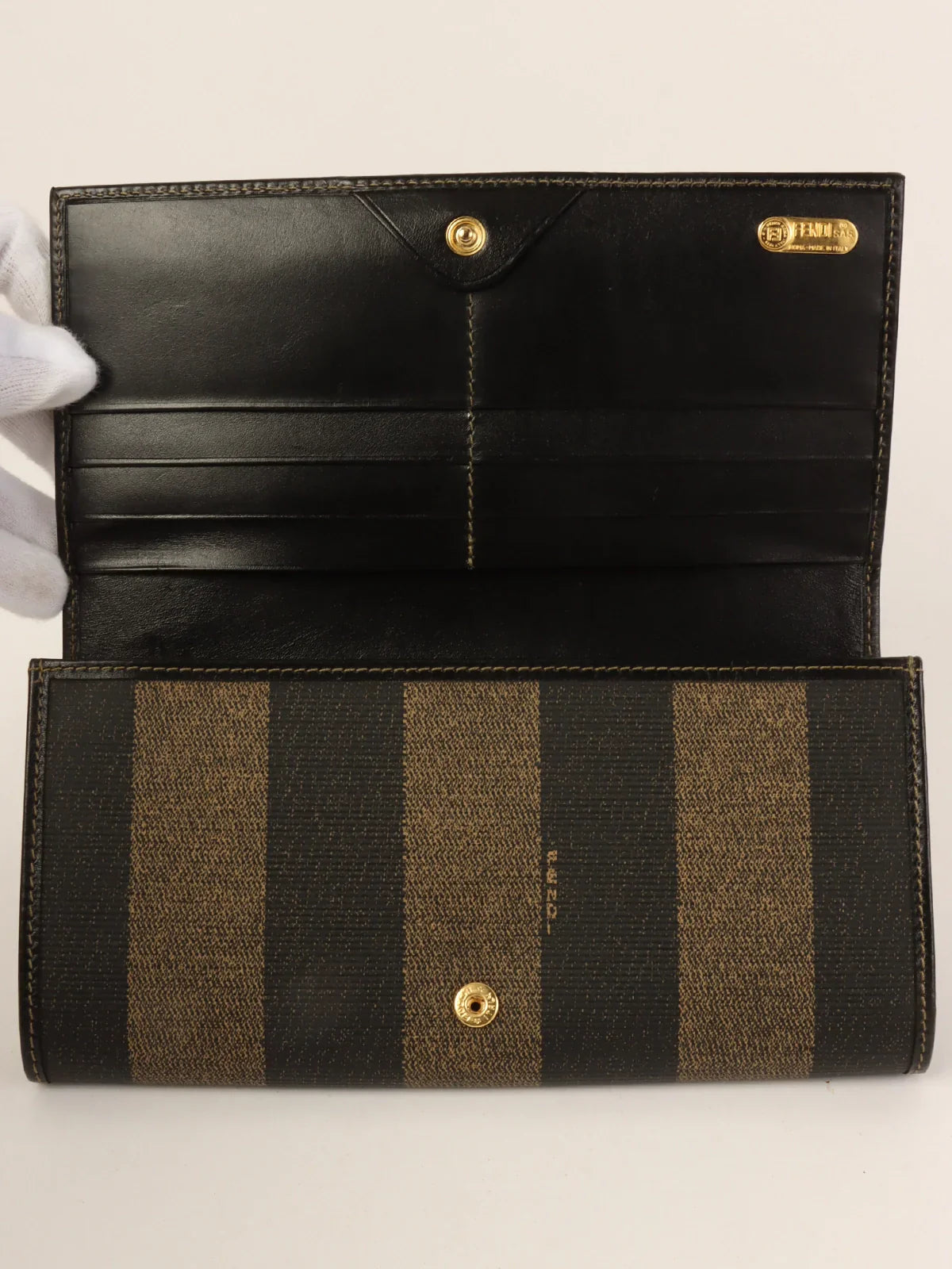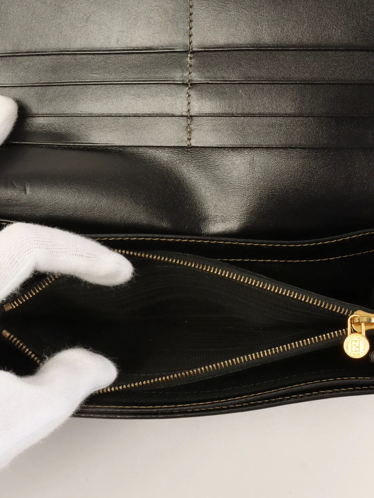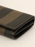 FENDI Striped Pattern Logo Embossed Long Wallet Black