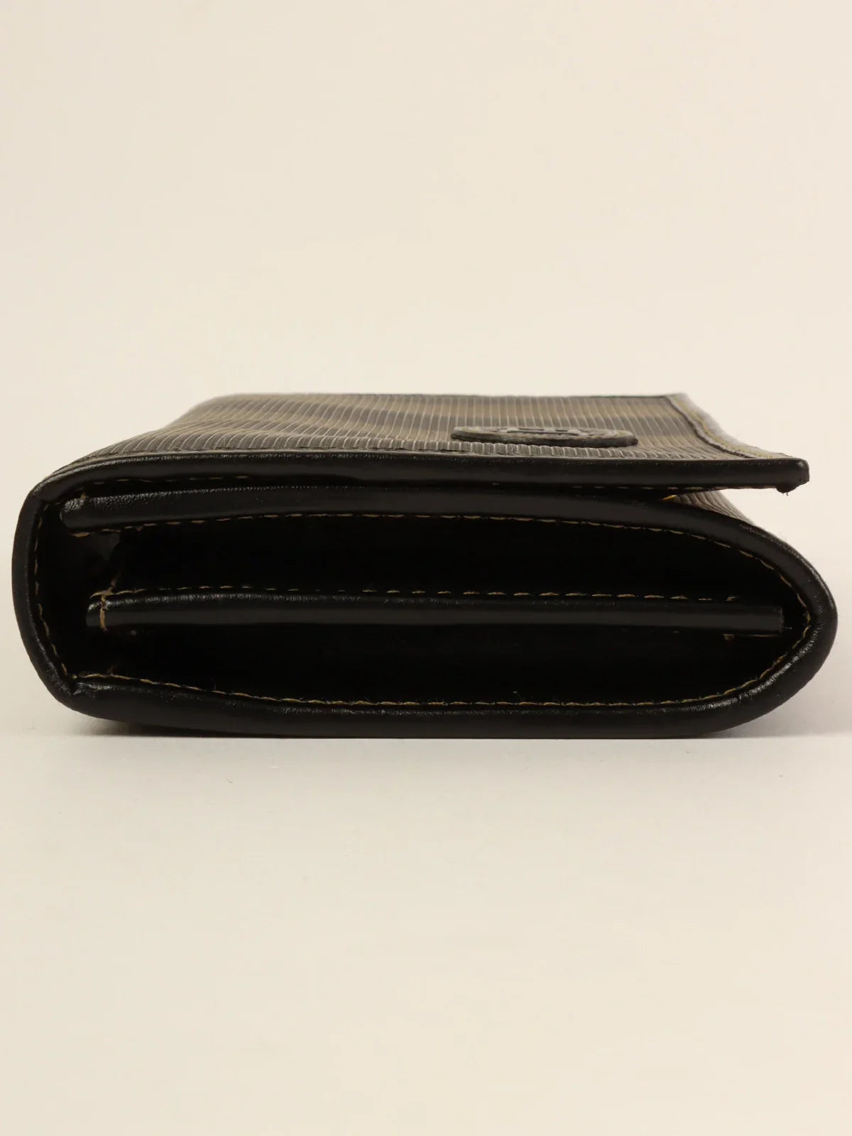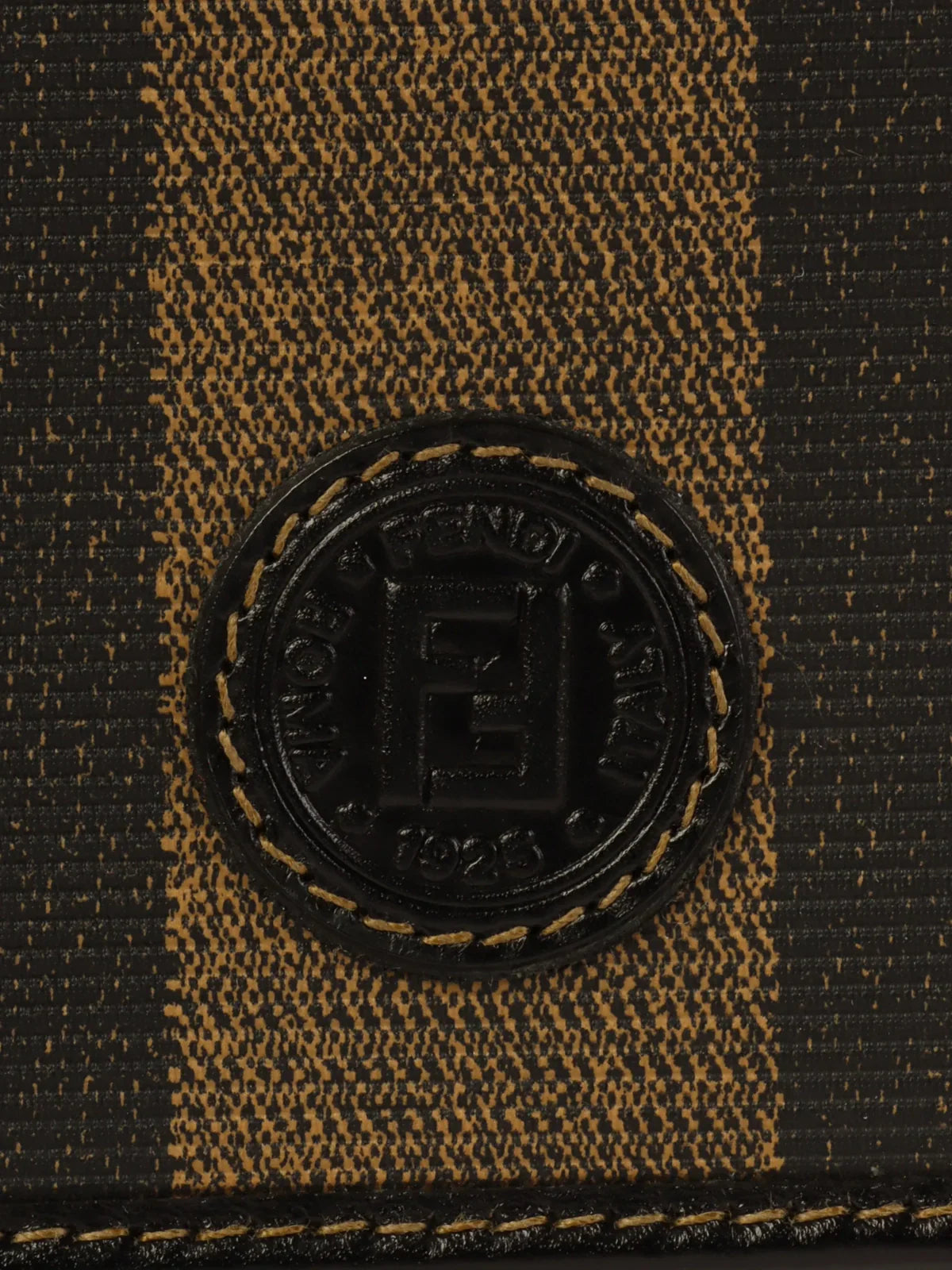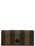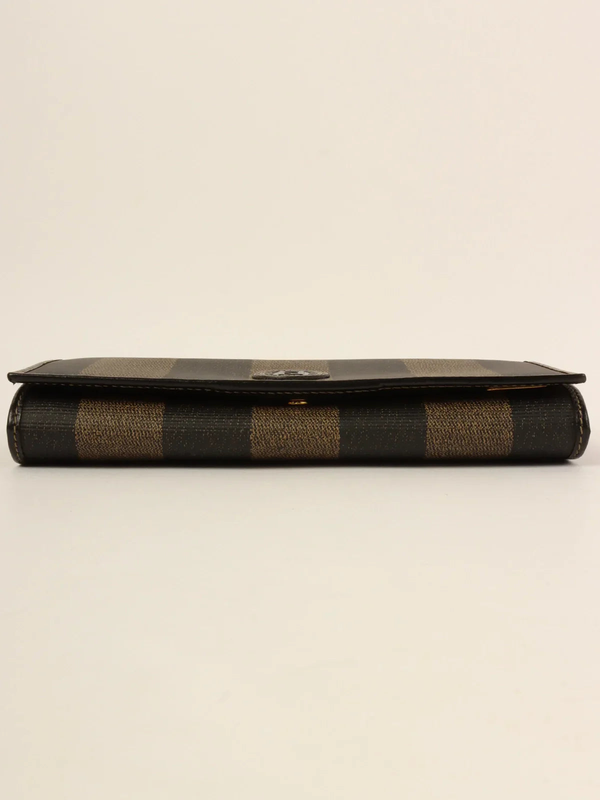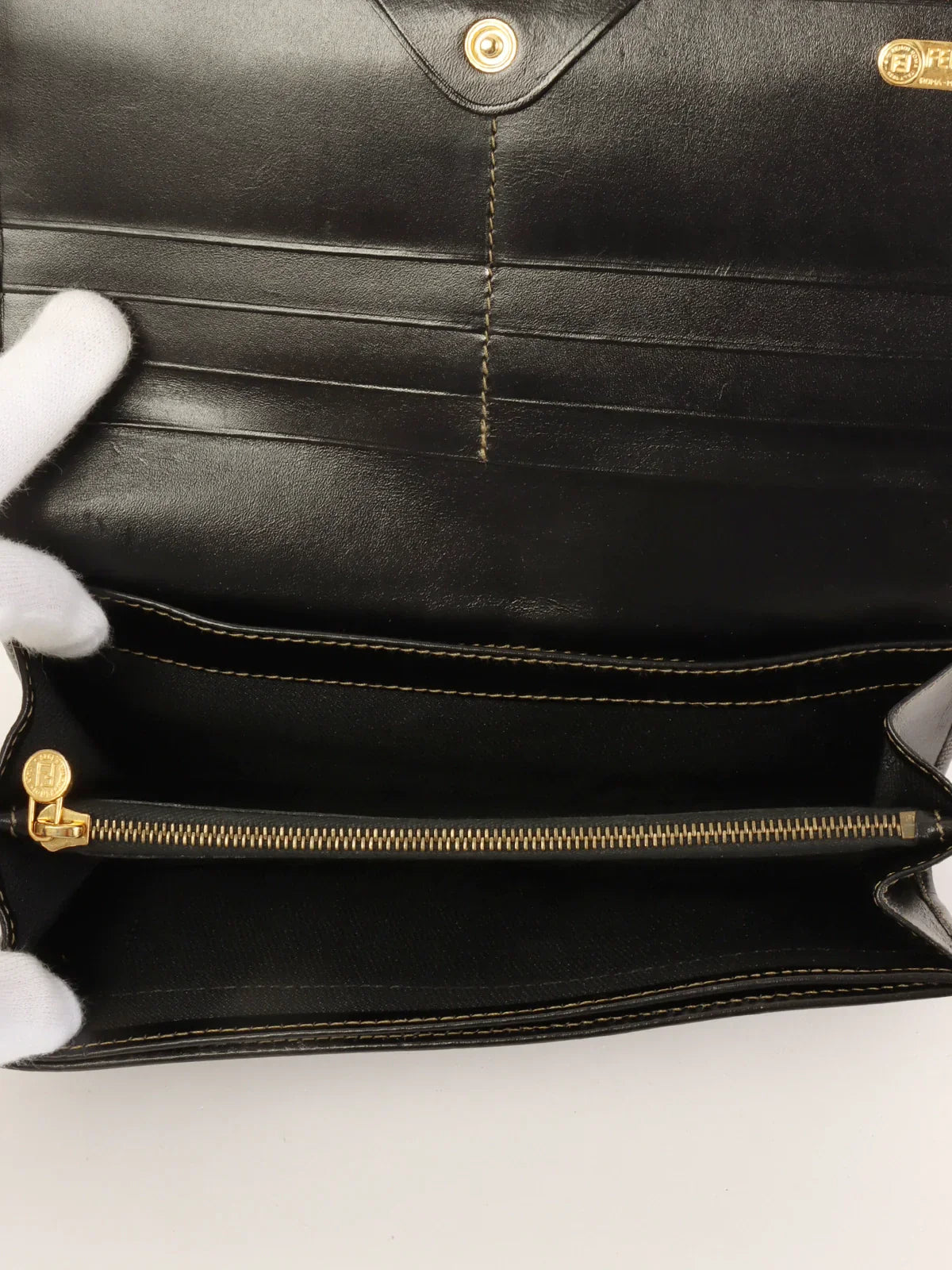 FENDI Striped Pattern Logo Embossed Long Wallet Black