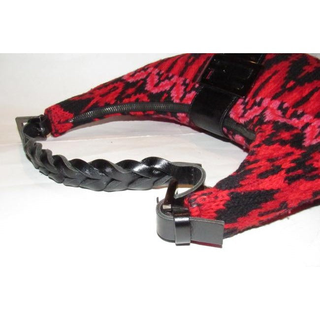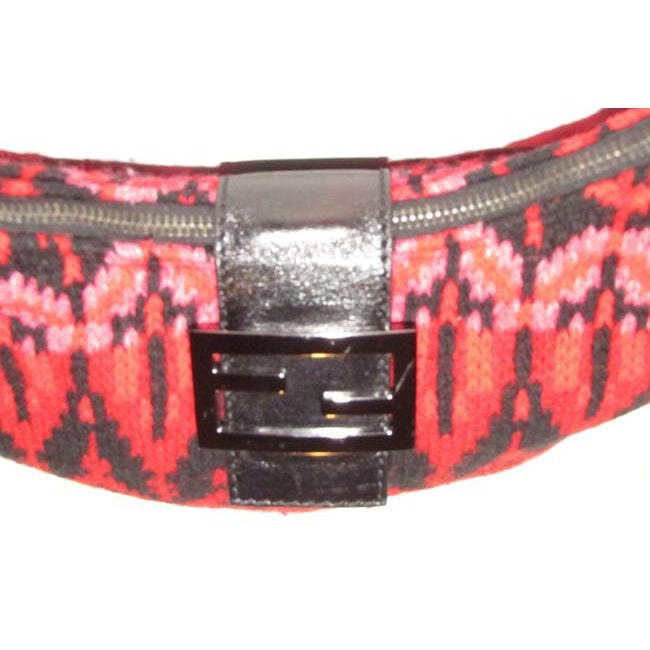 For sale is an amazing, limited edition, Fendi, red, pink, and black geometric design wool and black leather, zip top, hobo style, shoulder purse with chrome hardware and a leather strap with a bold chrome, FF logo, snap closure! This style purse by the Italian design house is a rare find!