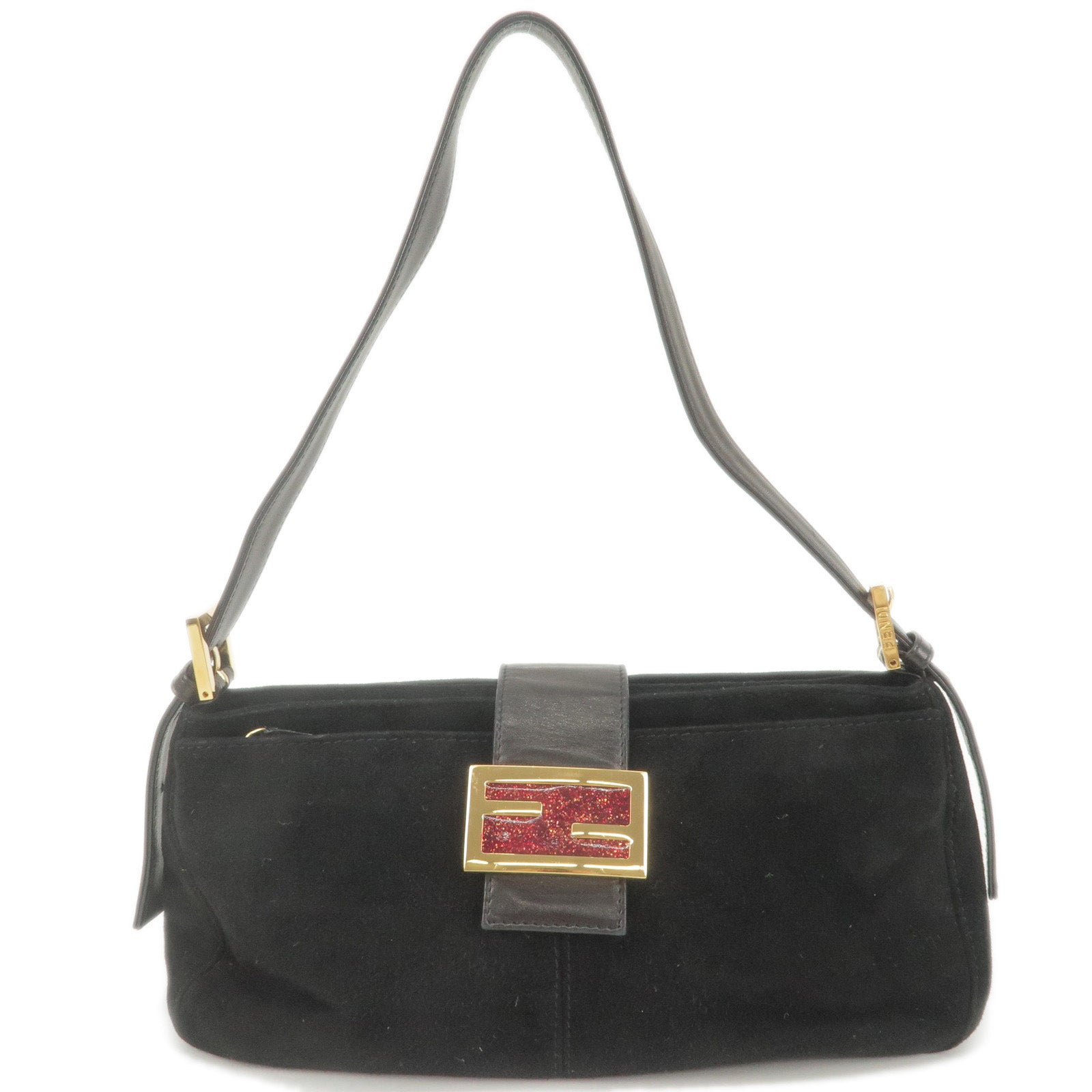 FENDI Suede Leather Mamma Baguette Shoulder Bag Black 26722