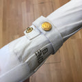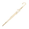 This stylish umbrella is constructed fabric in White with golden metal details and a clear plastic handle