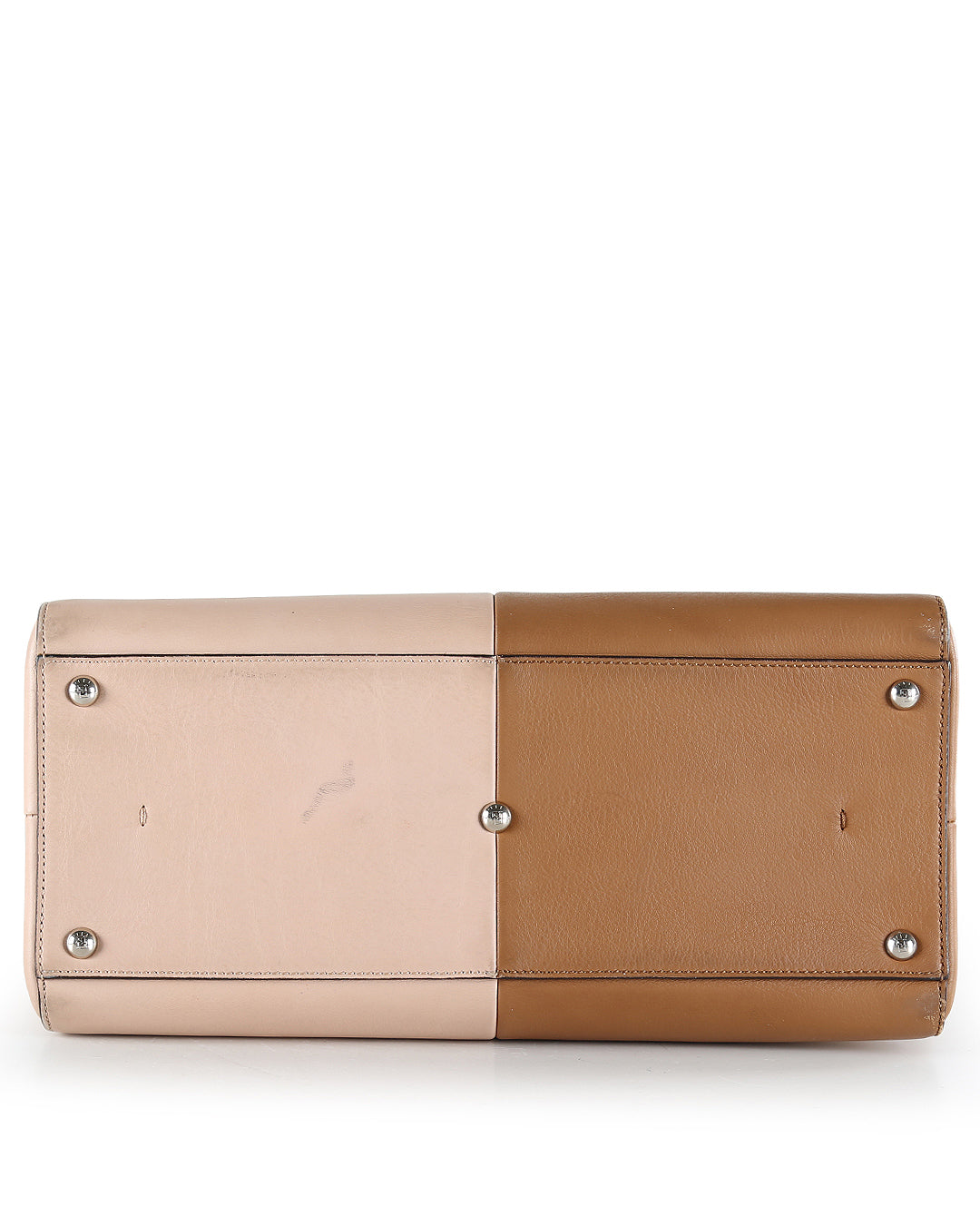 FENDI Tan & Nude Bicolor Leather Trois Jours Shoulder Bag.
