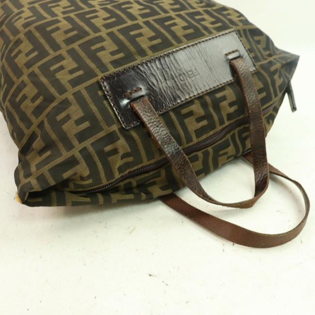 Fendi Tobacco Canvasleather Satcheltote Brown Zucca Print Canvas Satchel