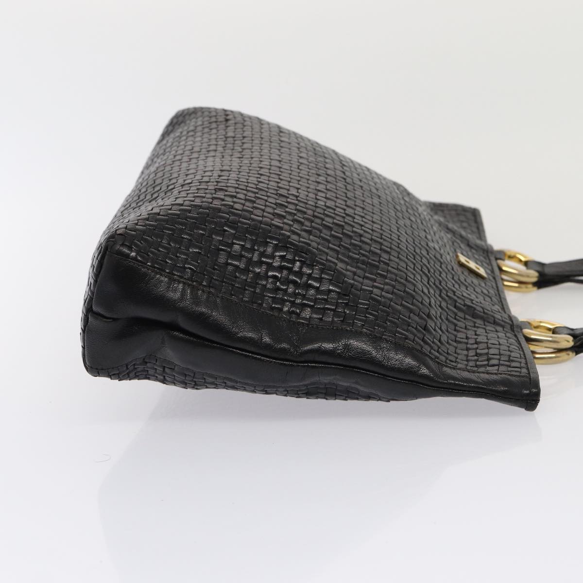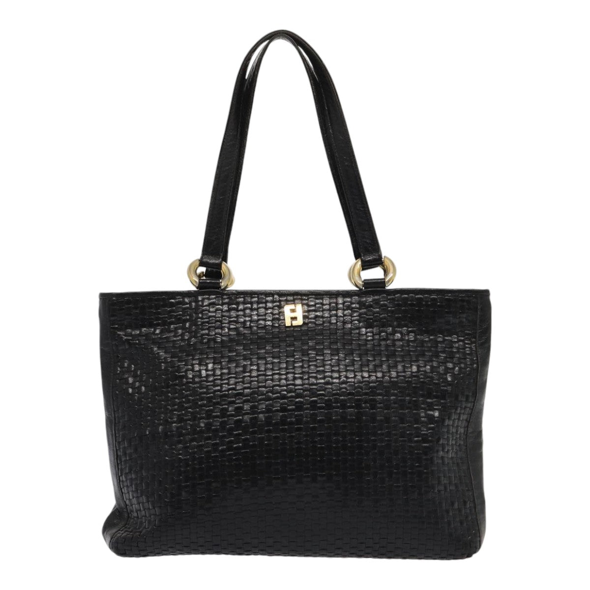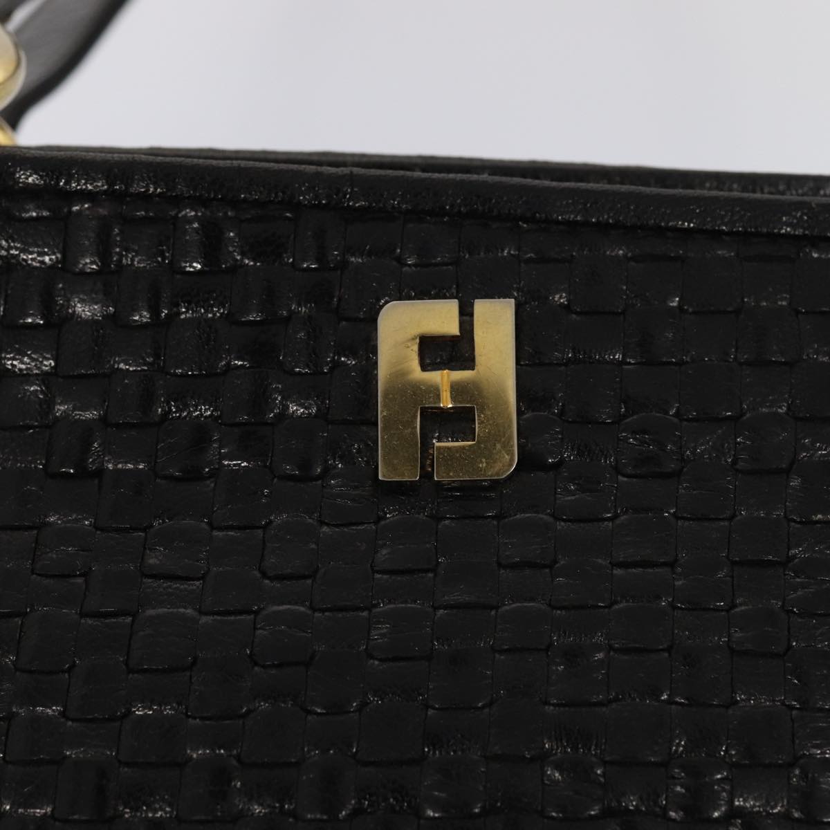FENDI Tote Bag Leather Black Gold Auth 84621