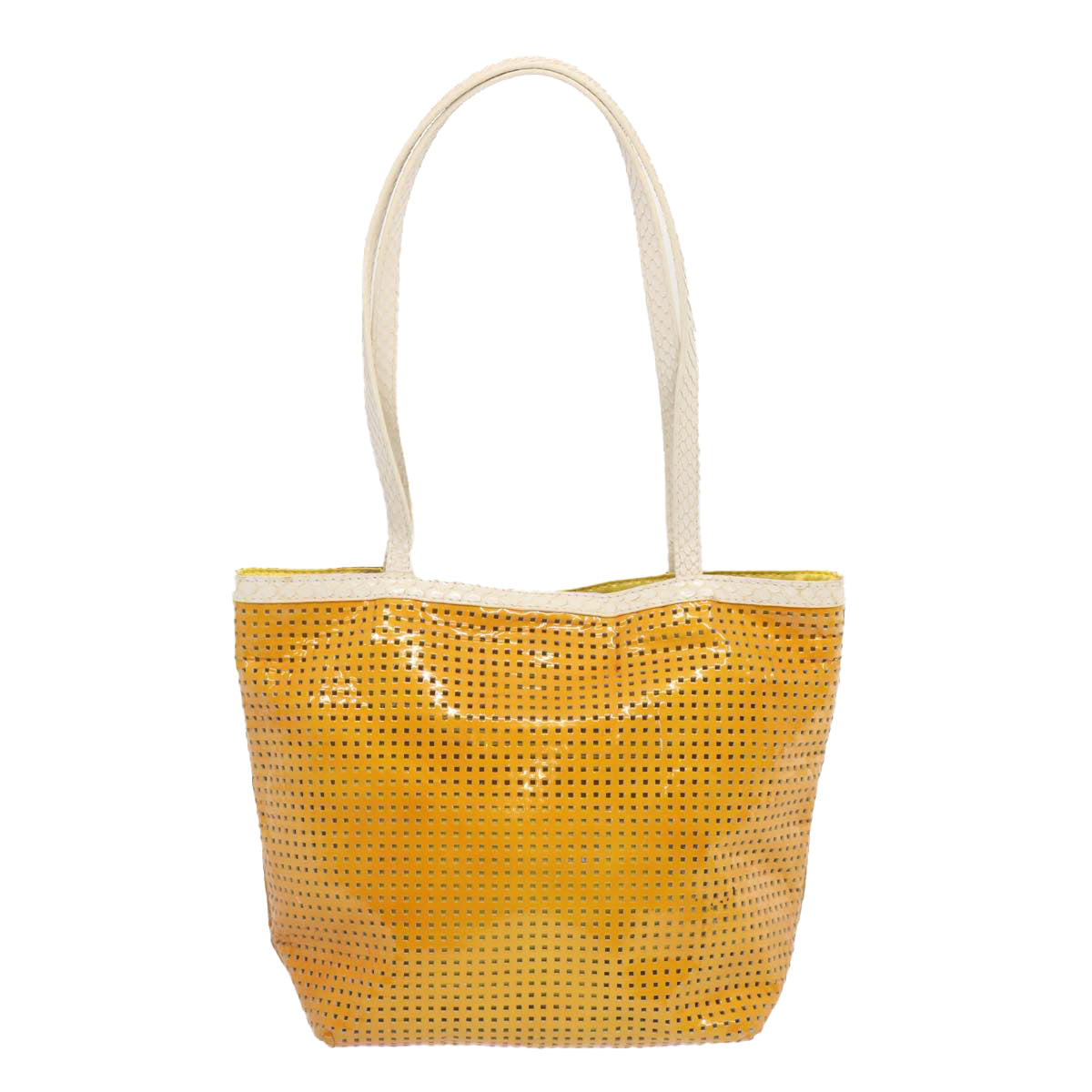 FENDI Tote Bag Patent leather Yellow Auth ti1601