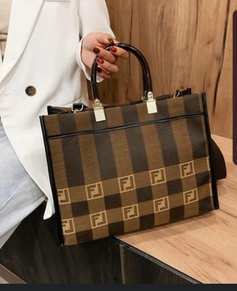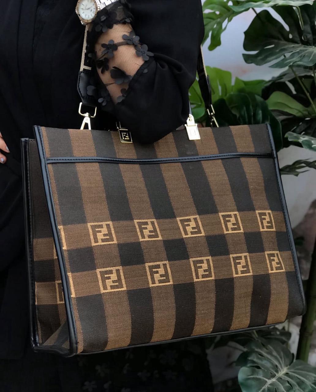 FENDI Tote Monogram Canvas Stylish & Spacious Women Bag (Brown/Black)