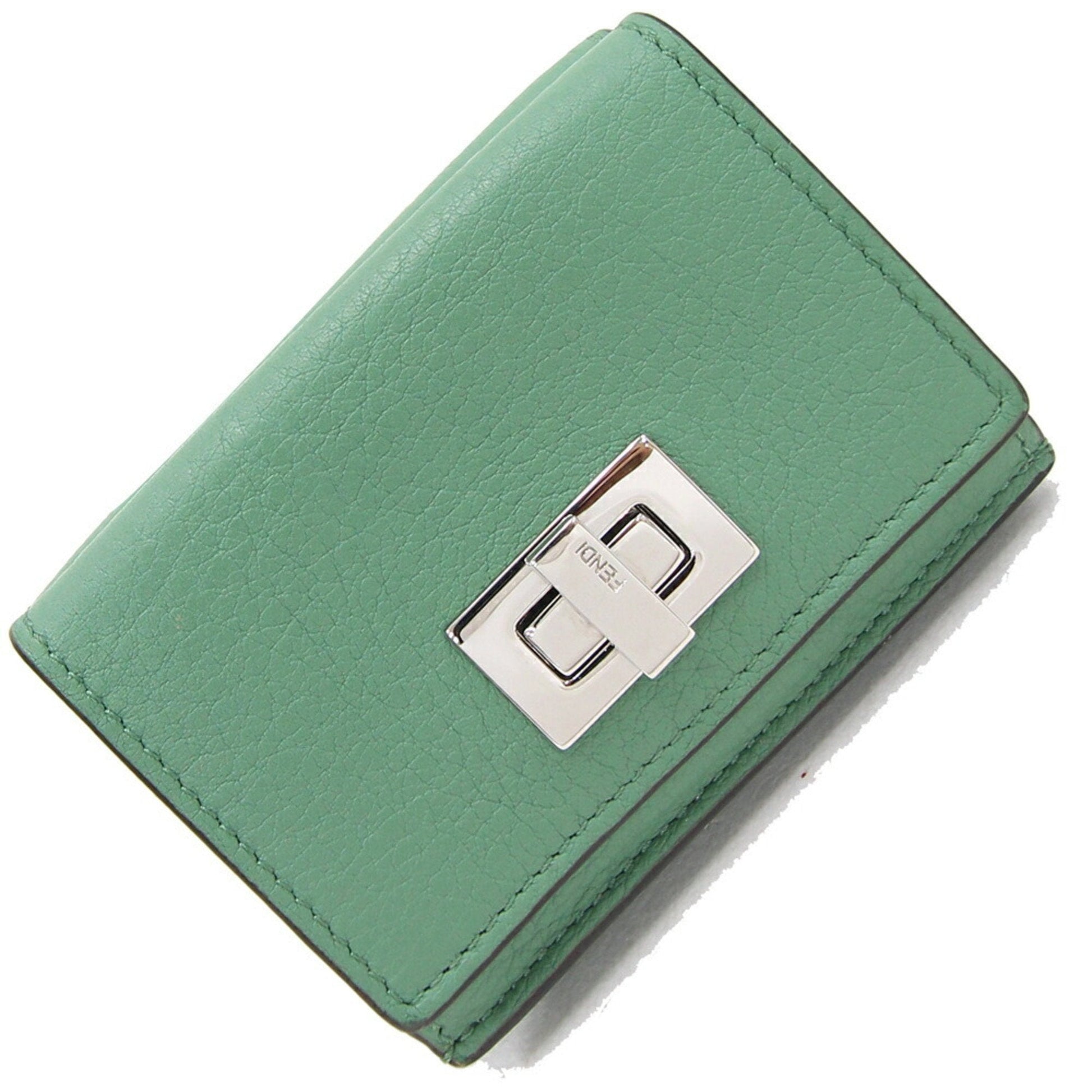 Fendi Trifold Wallet Peekaboo 8M0426 Green Leather Women's FENDI