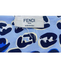 Fendi Twilly Rappy Reversible Silk Scarf Blue Leopard Print Logo Women's
