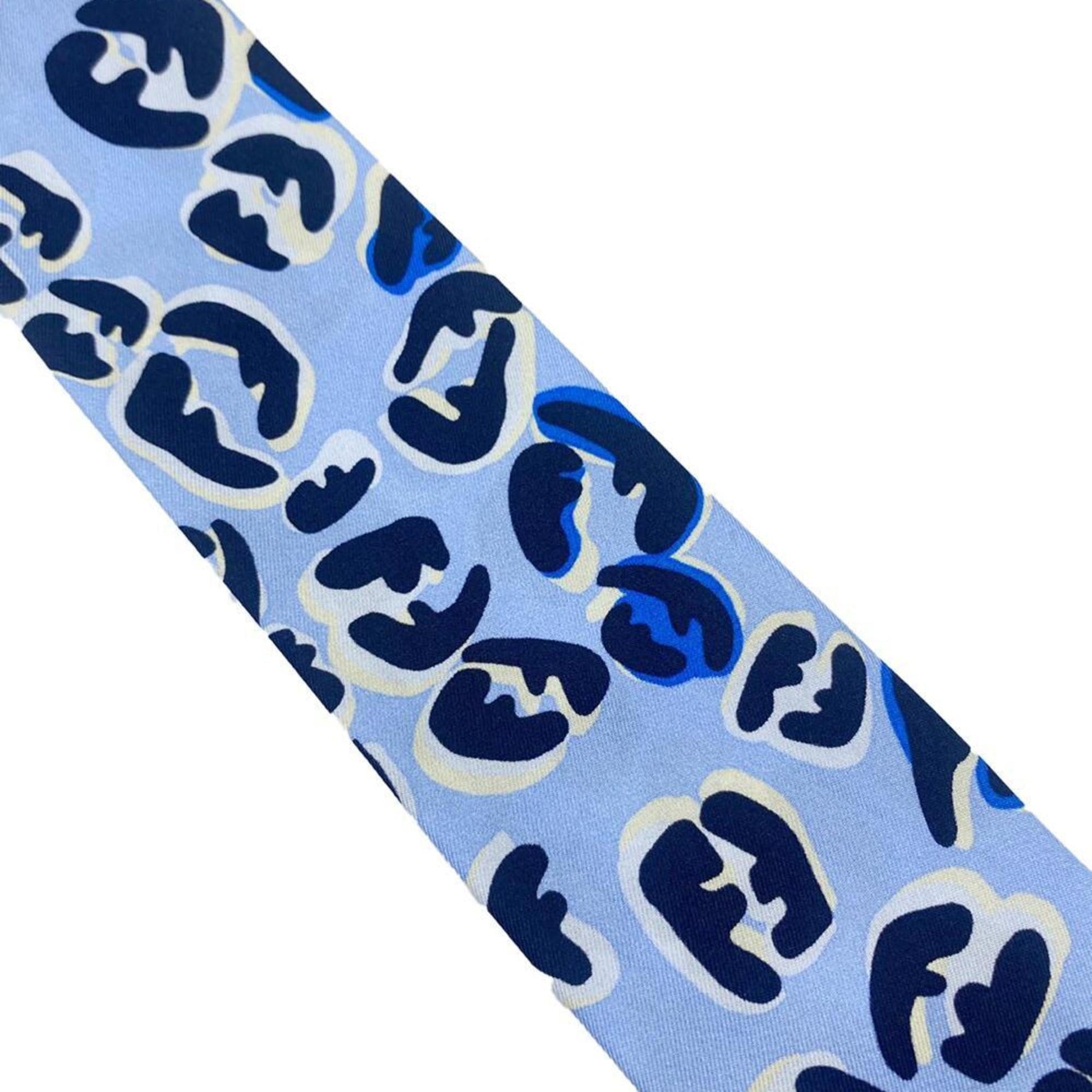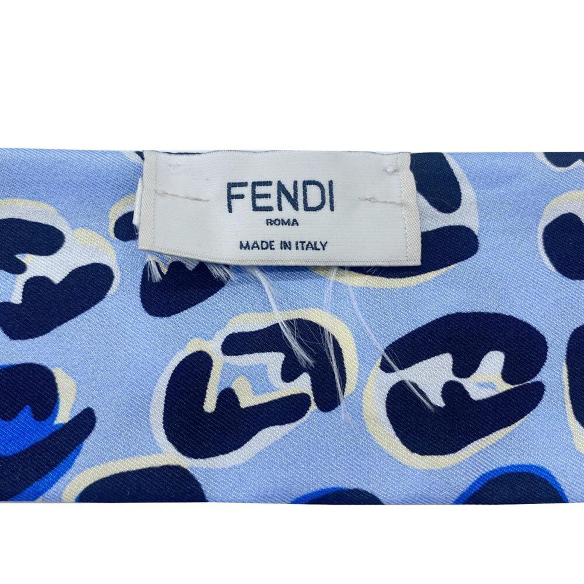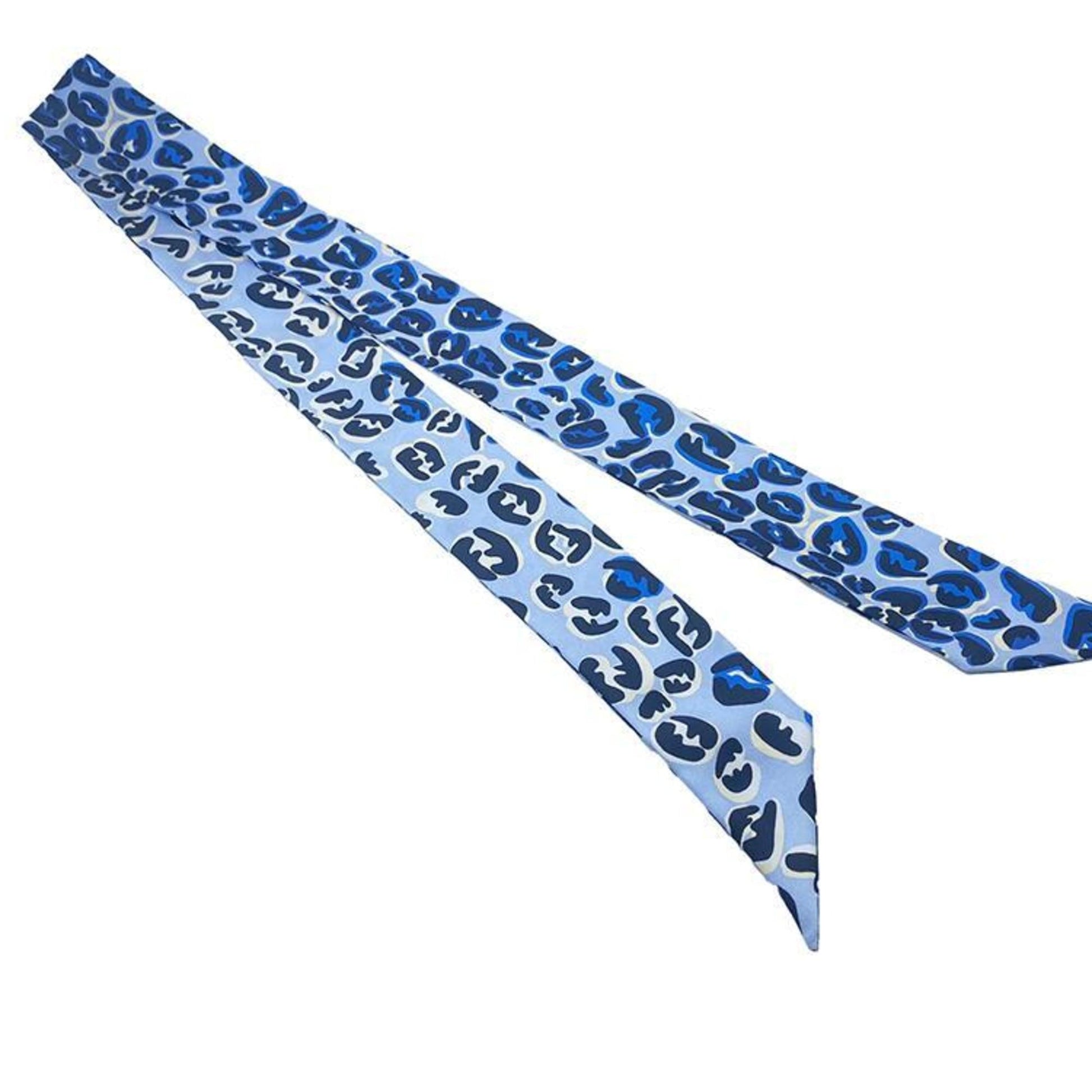 FENDI Twilly Rappy Reversible Silk Scarf Blue Leopard Print Logo Women's