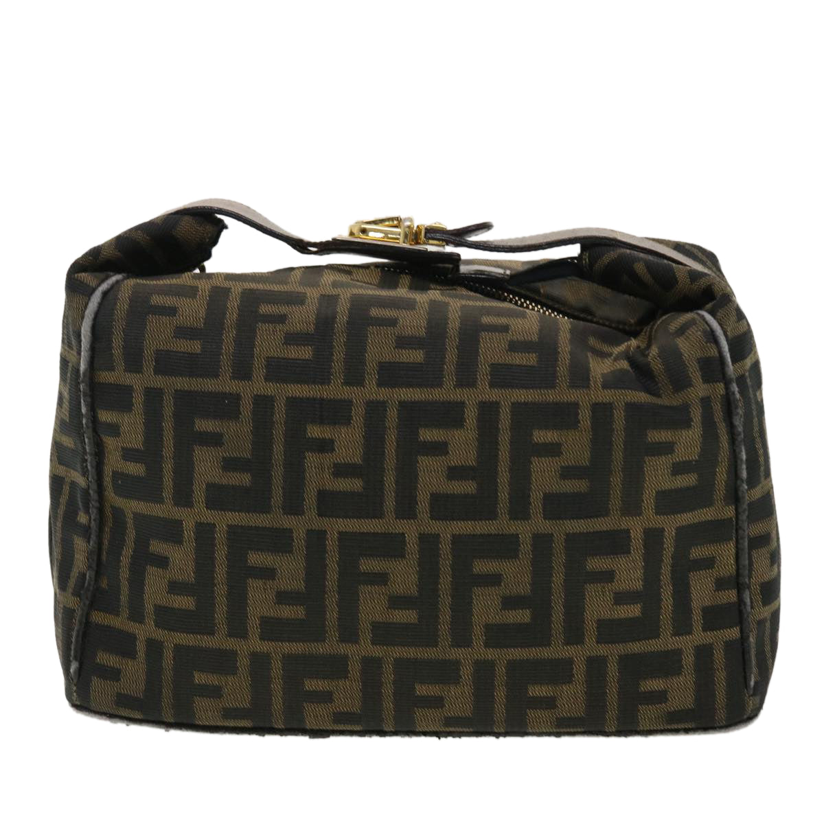 FENDI Vanity Zucca Canvas Cosmetic Pouch Black Brown Auth 40323