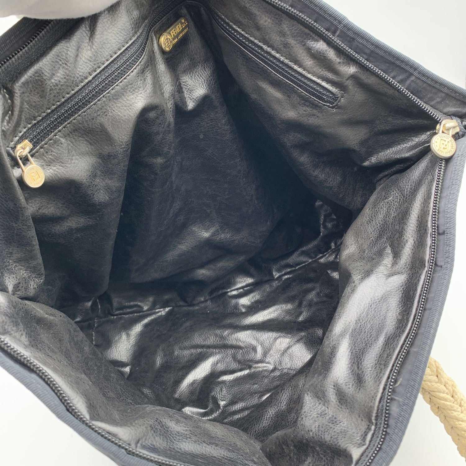 FENDI Vintage Black Nylon Tote Bag With Rope Straps