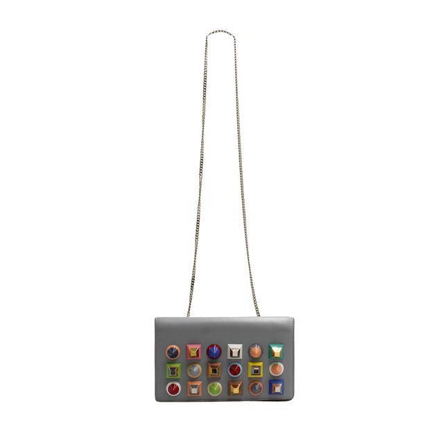 Fendi Vitello Dolce Rainbow Studded Wallet On Chain in Ardesia.