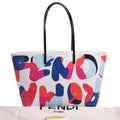 Details: White and Multicolor Leather / Black Leather Dual Shoulder Straps / Logo Print at Exterior / Cobalt Blue Fabric Lining / Two Slit Pockets at Interior / Zipper Closure at Top