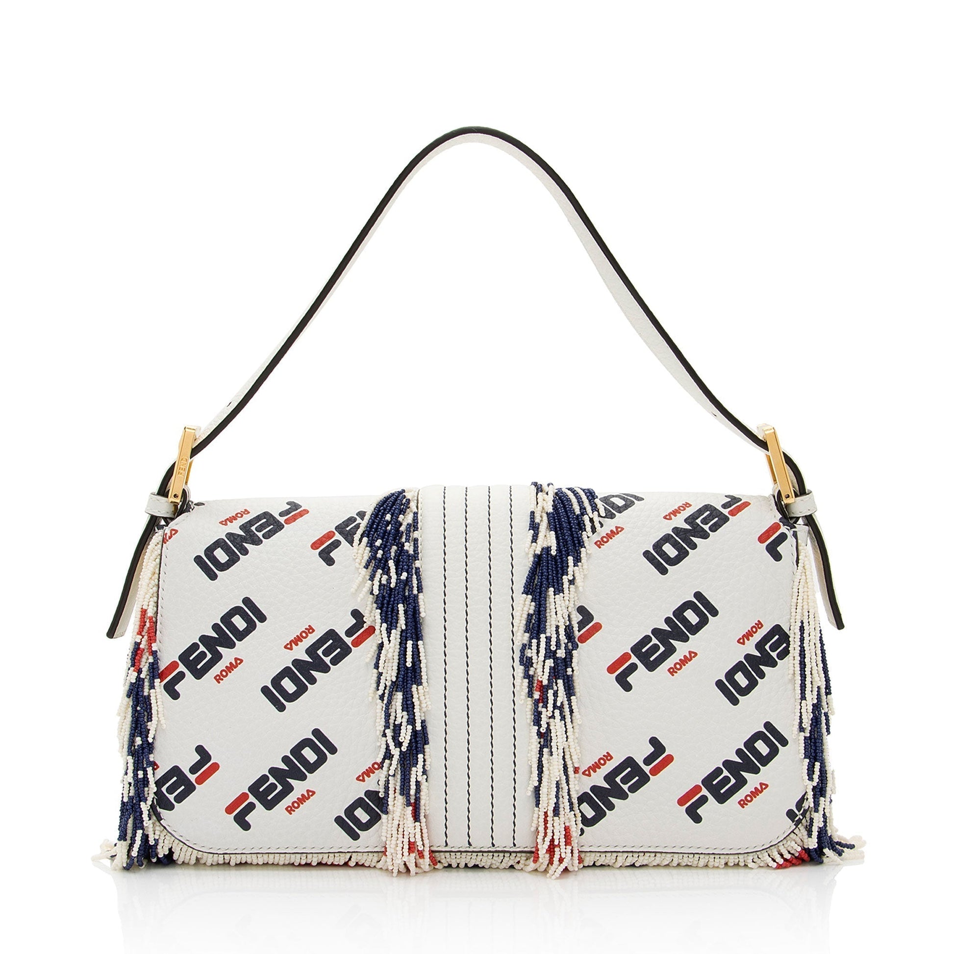 Fendi X Fila Mania Calfskin Beaded Baguette Shoulder Bag (SHF-bdJOQe)