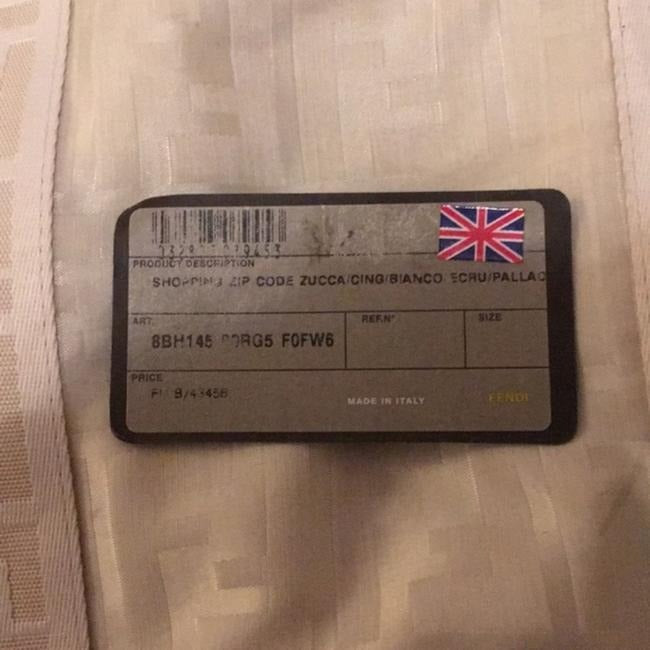 Fendi Xl Canvasleather Satcheltote Ivorypurple Zucco Print Canvas And Leather Tote