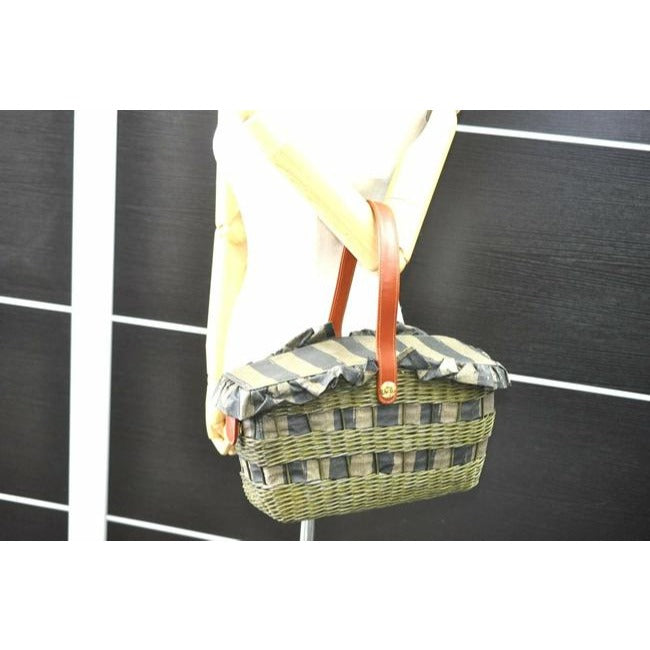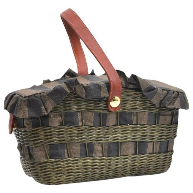 Fendi Xl Coated Canvasleatherraffia Basket Pequin Striped Printraffia Ctd Cnvsleatherraffia Tote