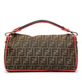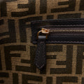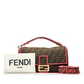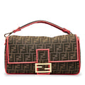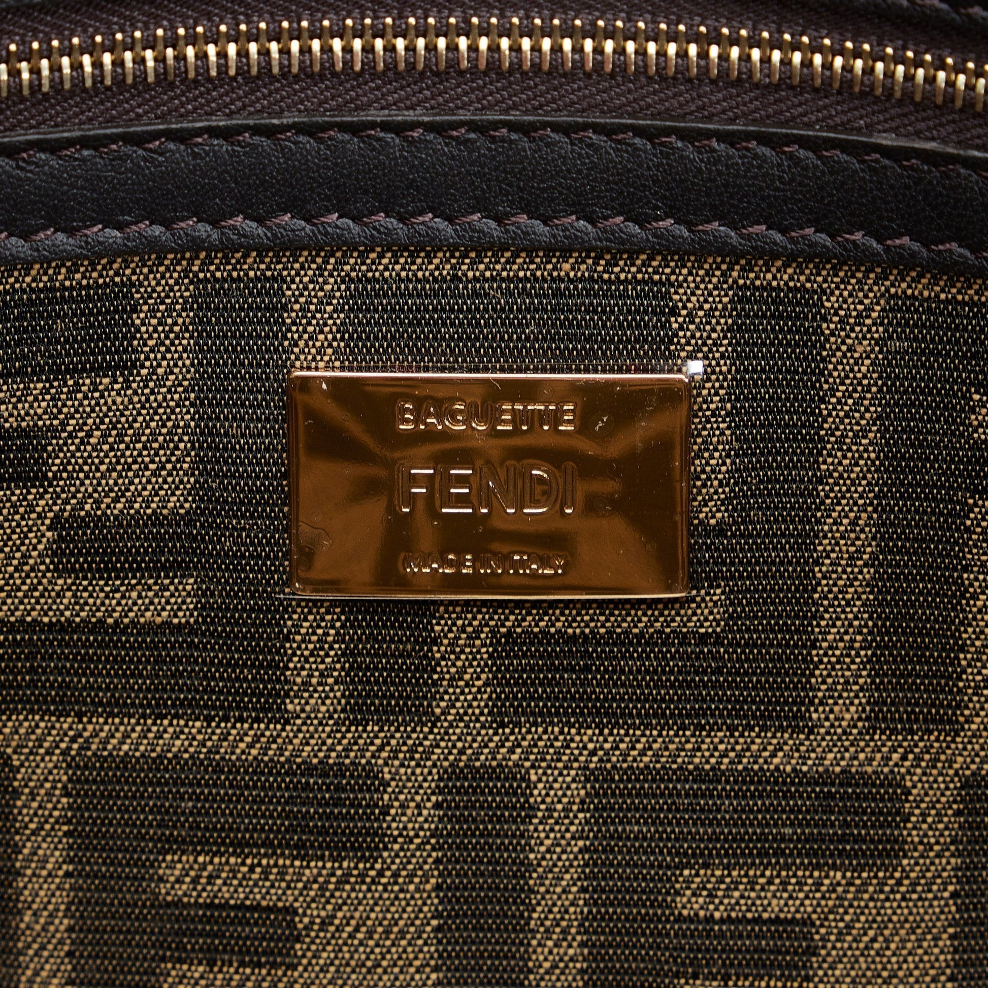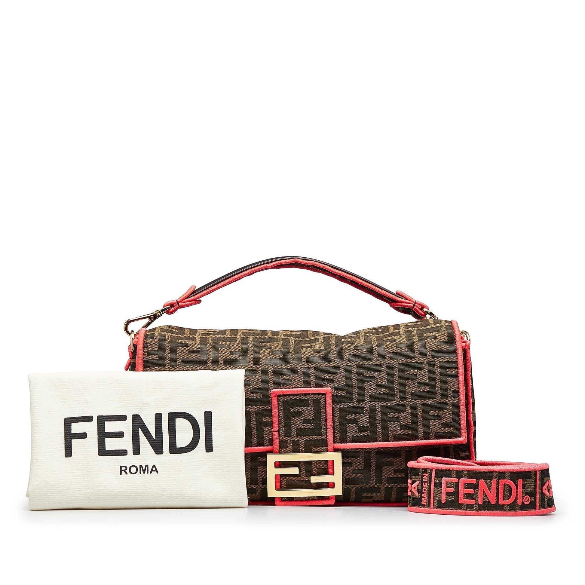 The Baguette satchel features a canvas body, a flat leather top handle, an adjustable flat shoulder strap, front flap with magnetic closure, and an interior zip pocket. Comes with dust bag