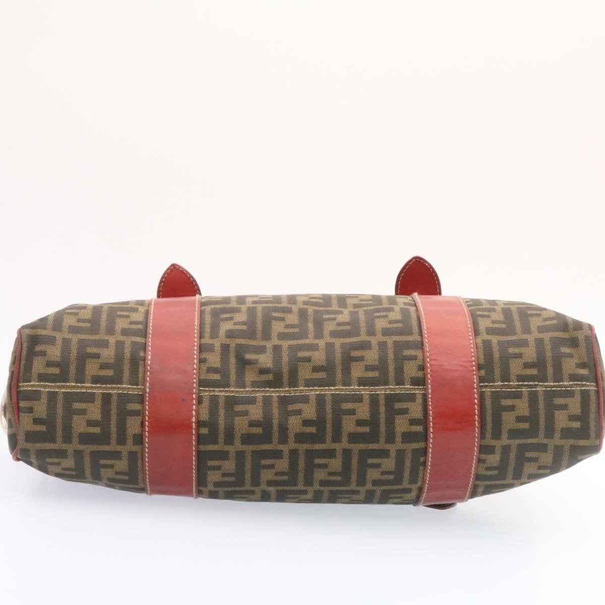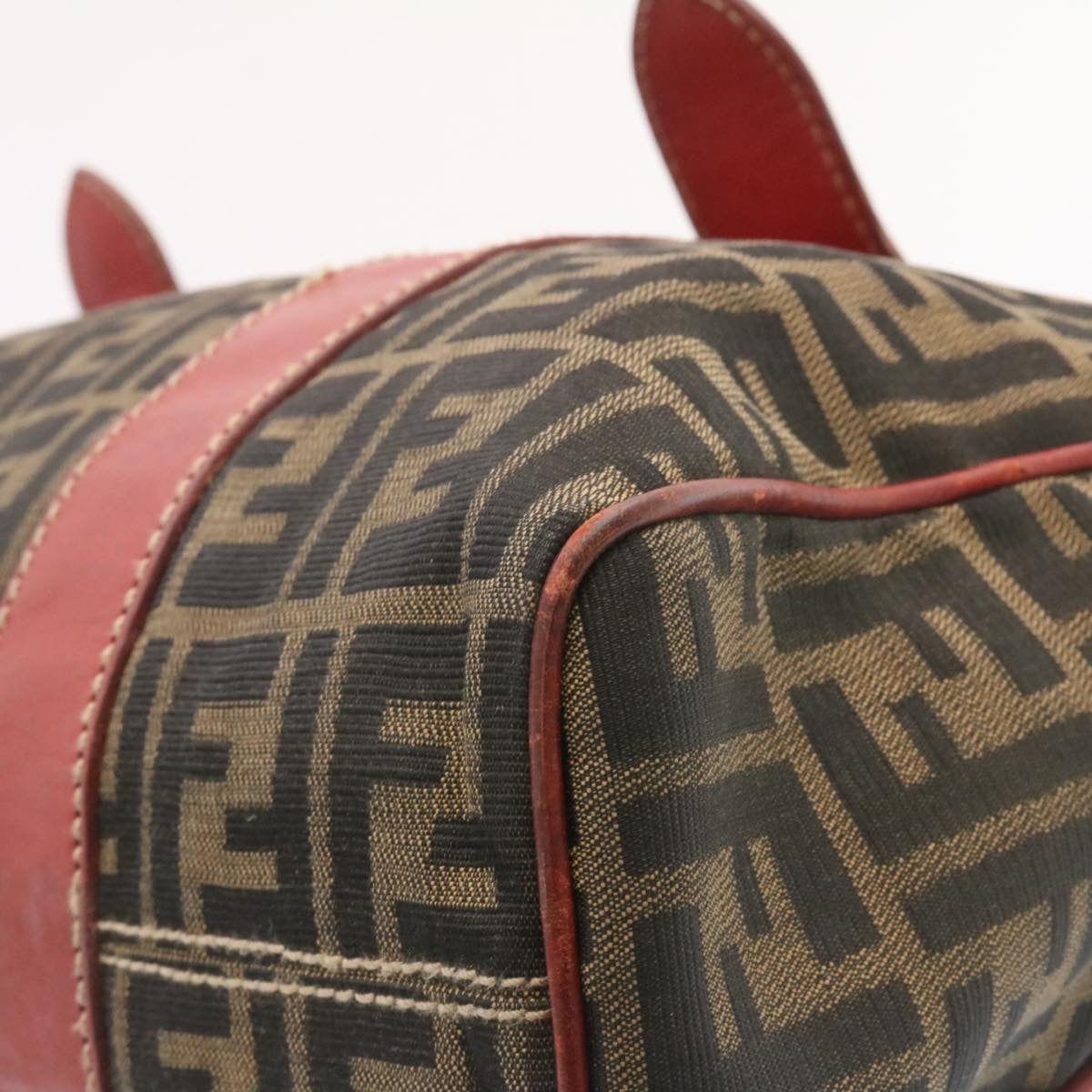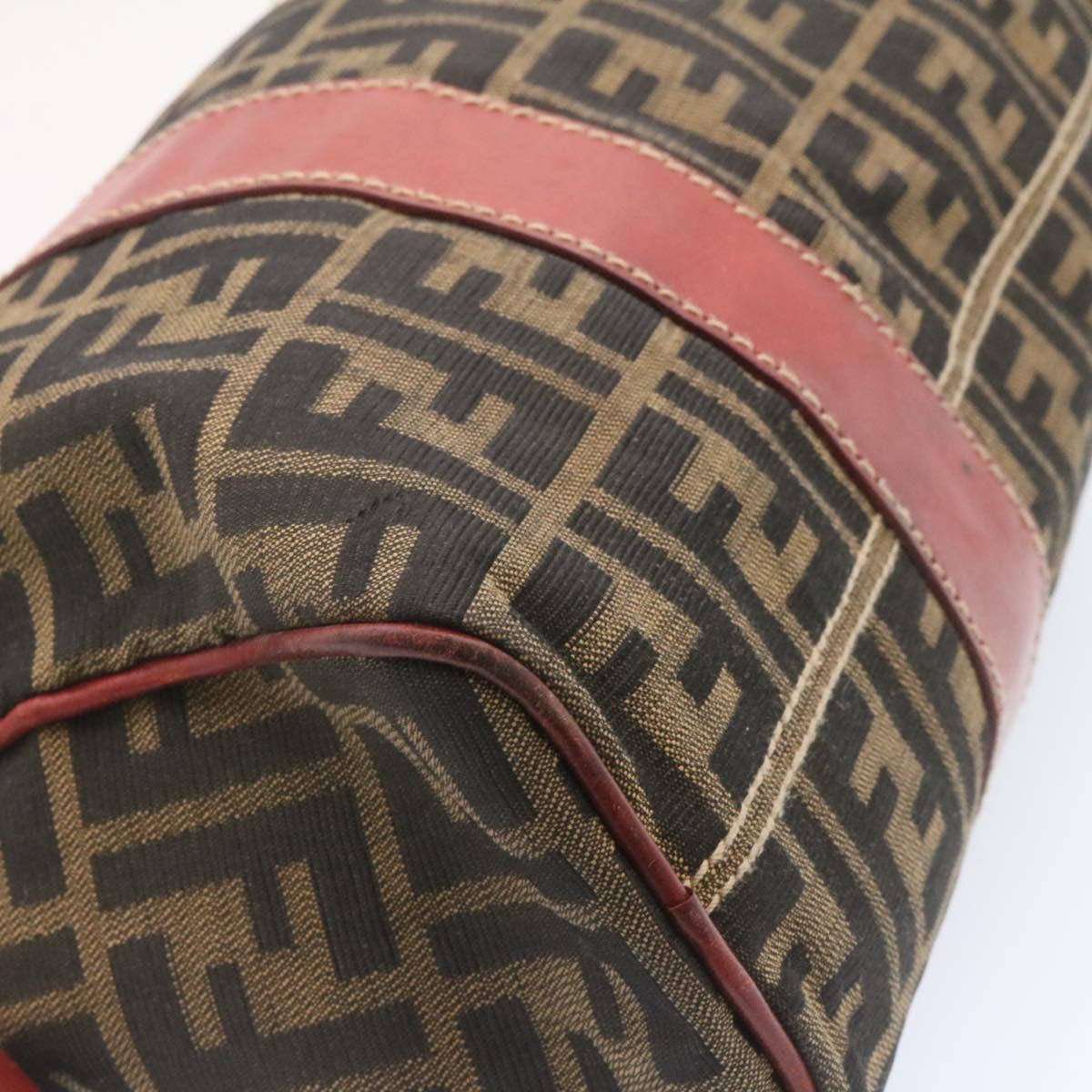 FENDI Zucca Canvas Boston Bag Brown Red Auth am1732g