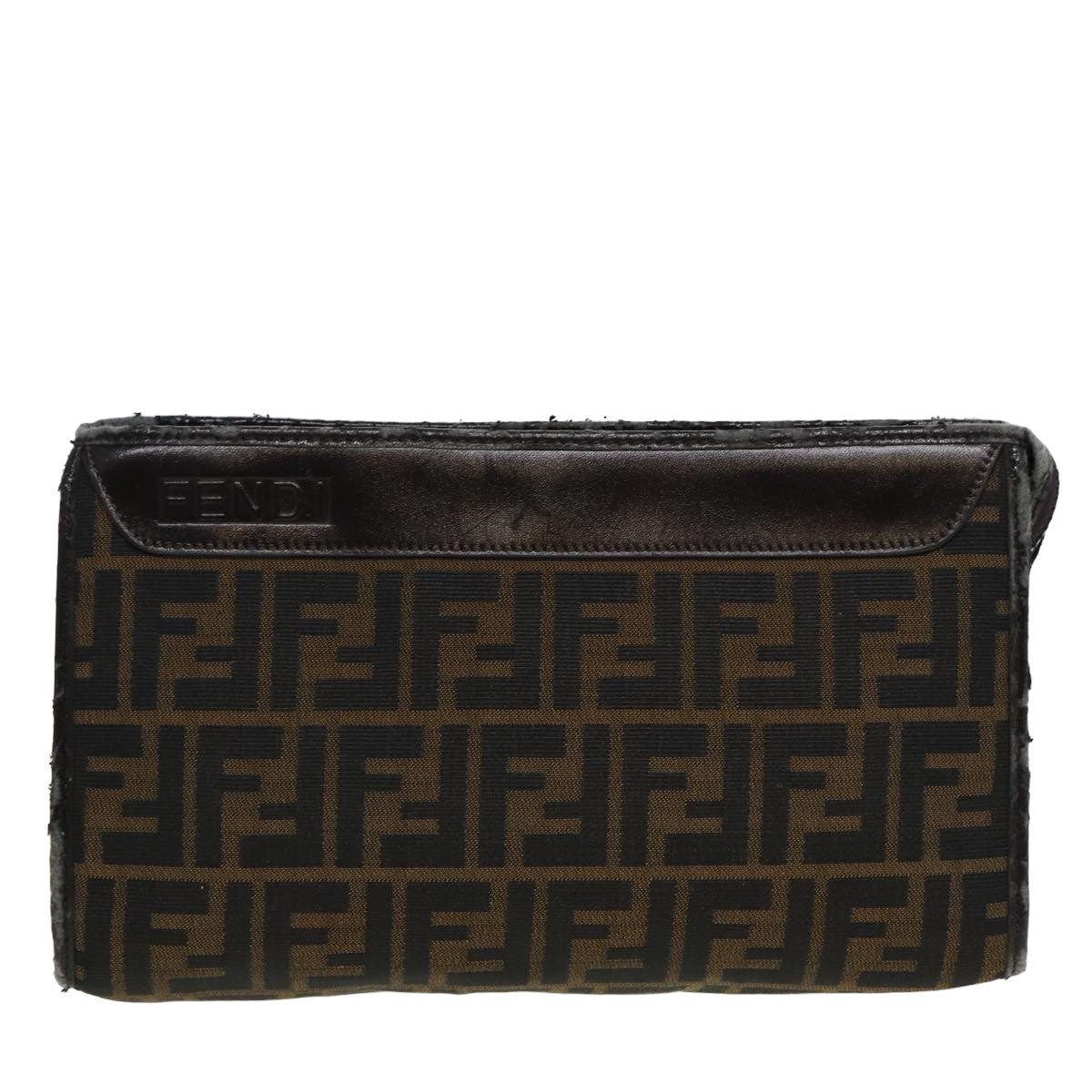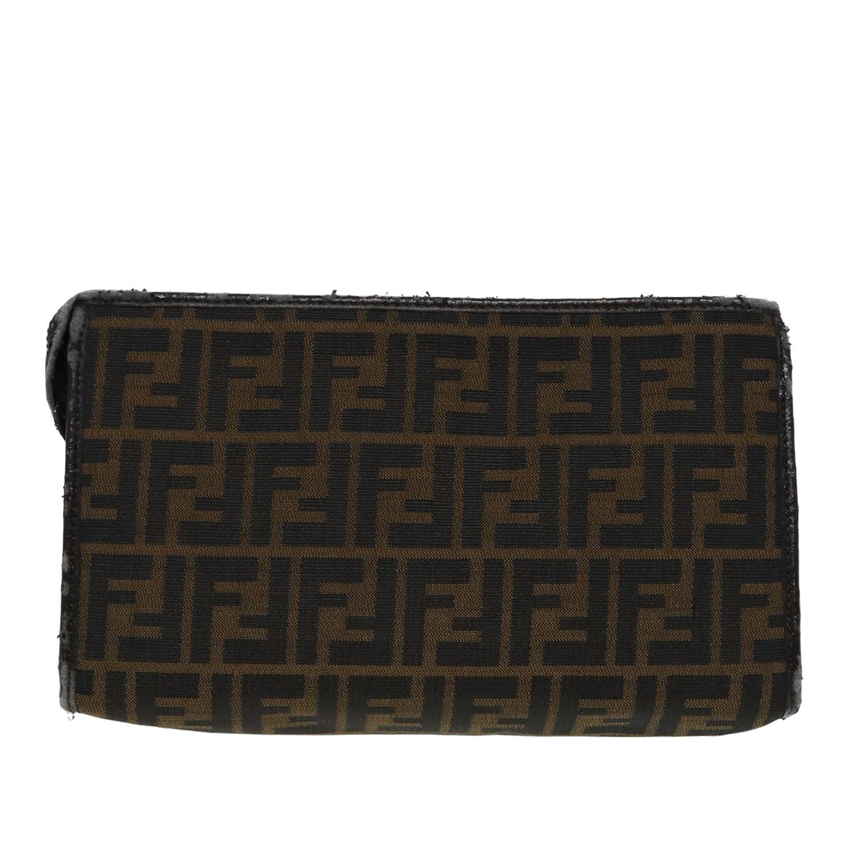 FENDI Zucca Canvas Clutch Bag Brown Auth 81841