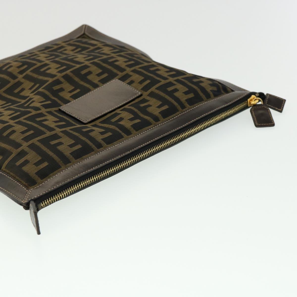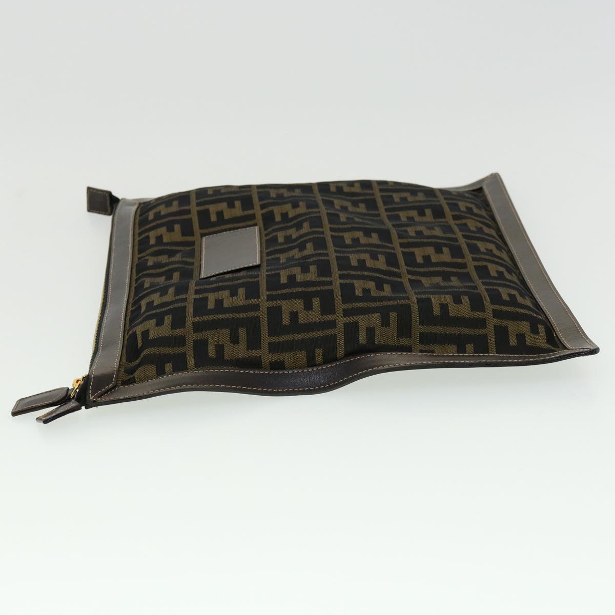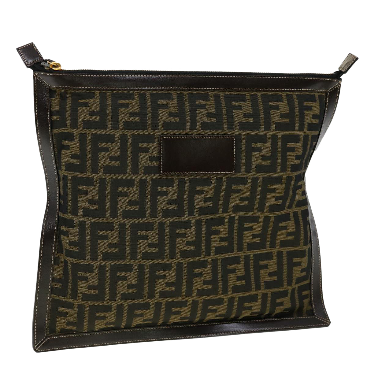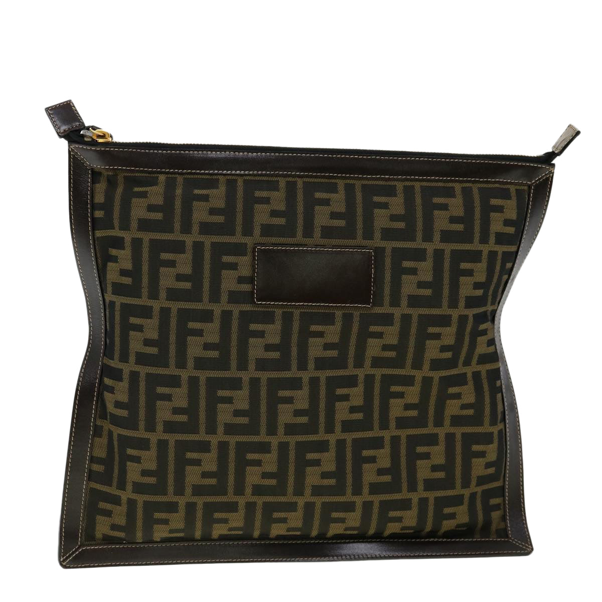 FENDI Zucca Canvas Clutch Bag Brown Auth am2779g