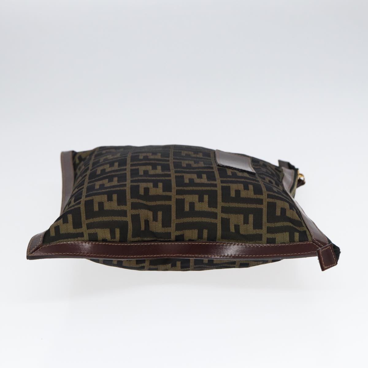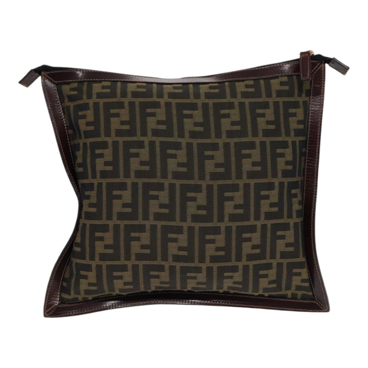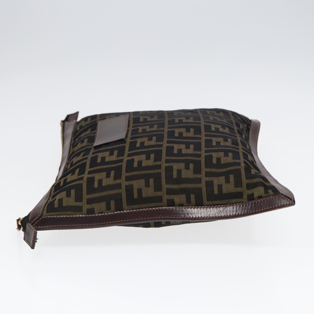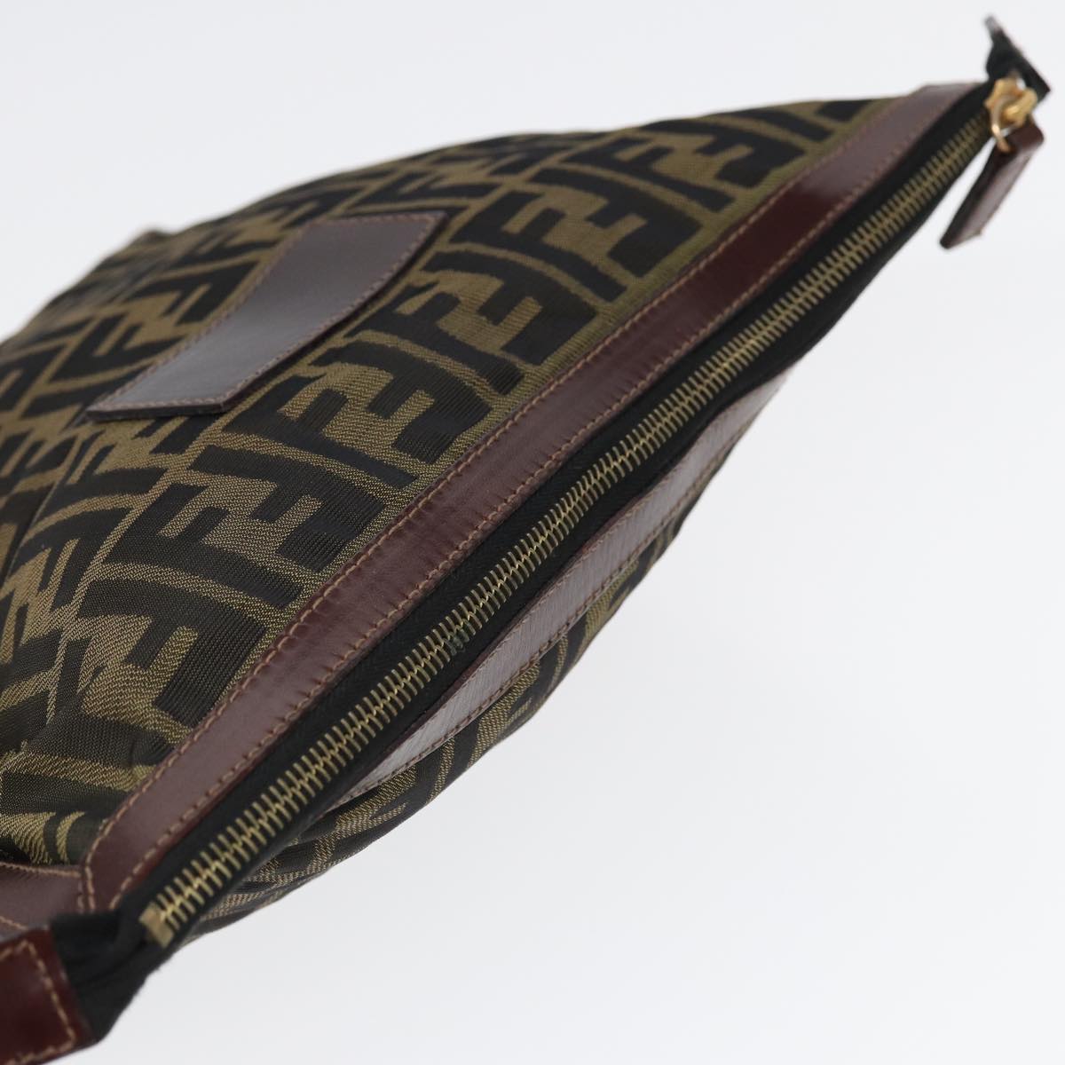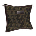 FENDI Zucca Canvas Clutch Bag Brown Black gold Auth fm3776