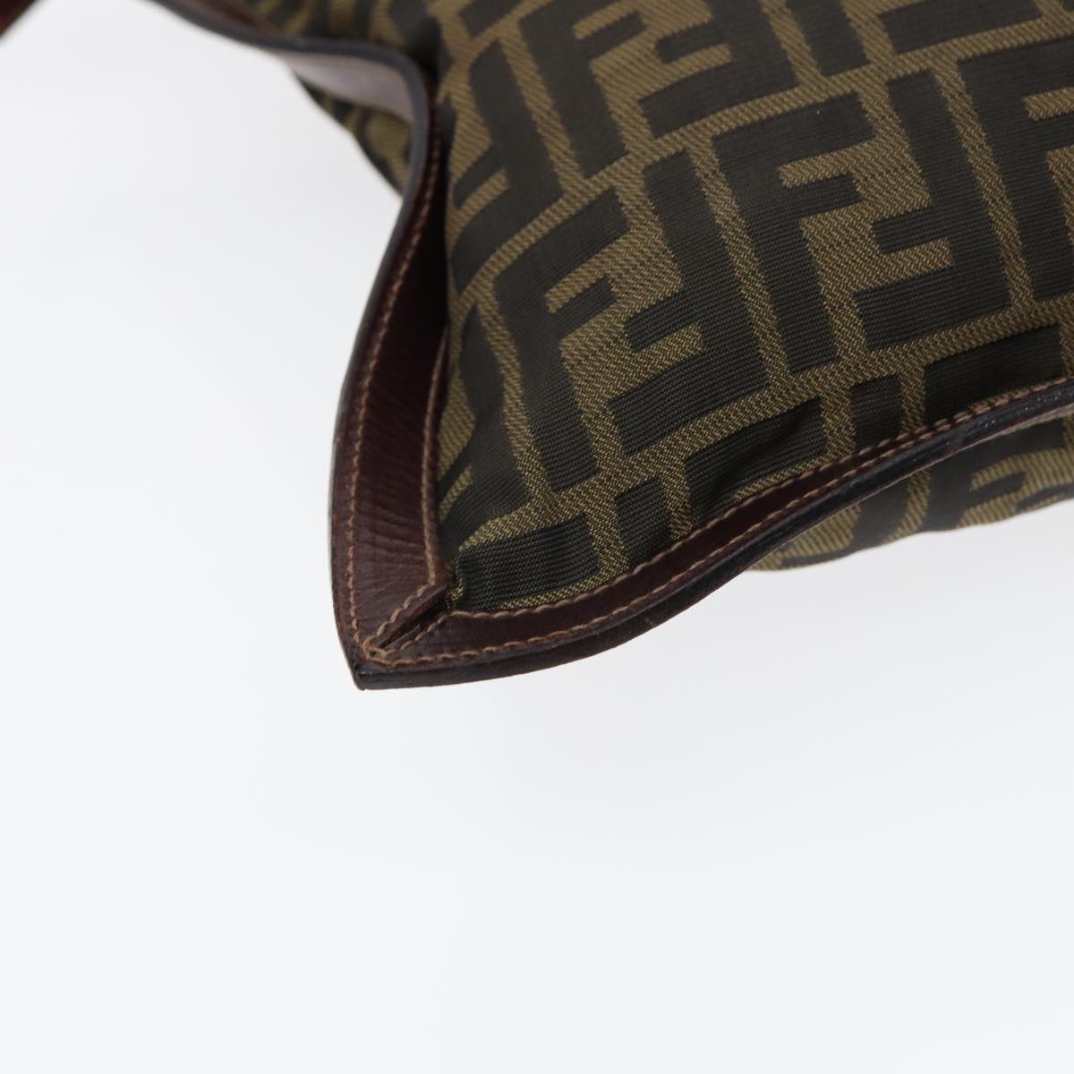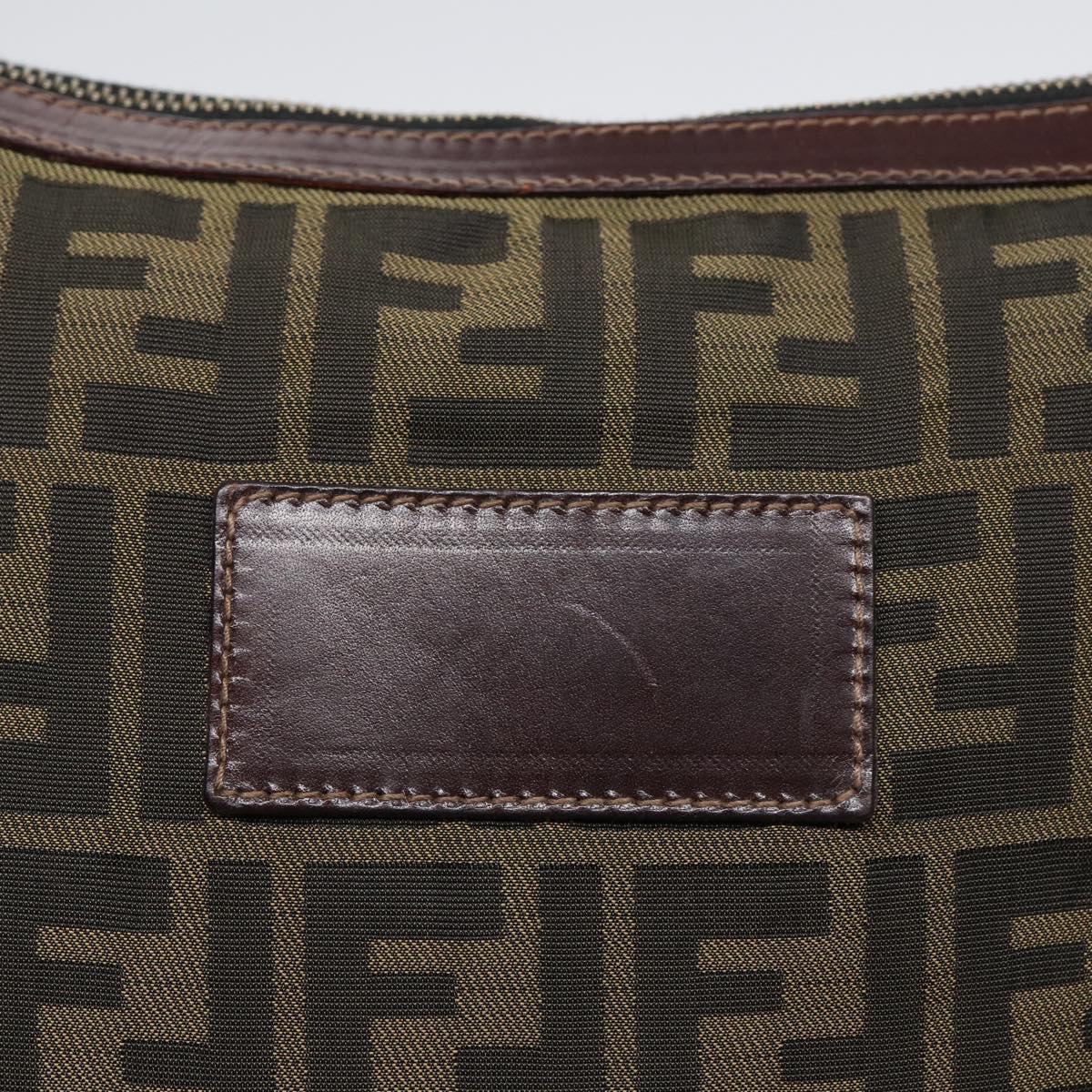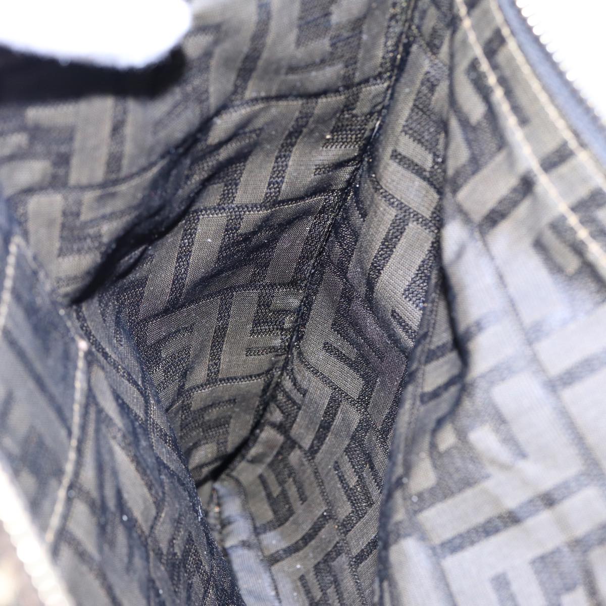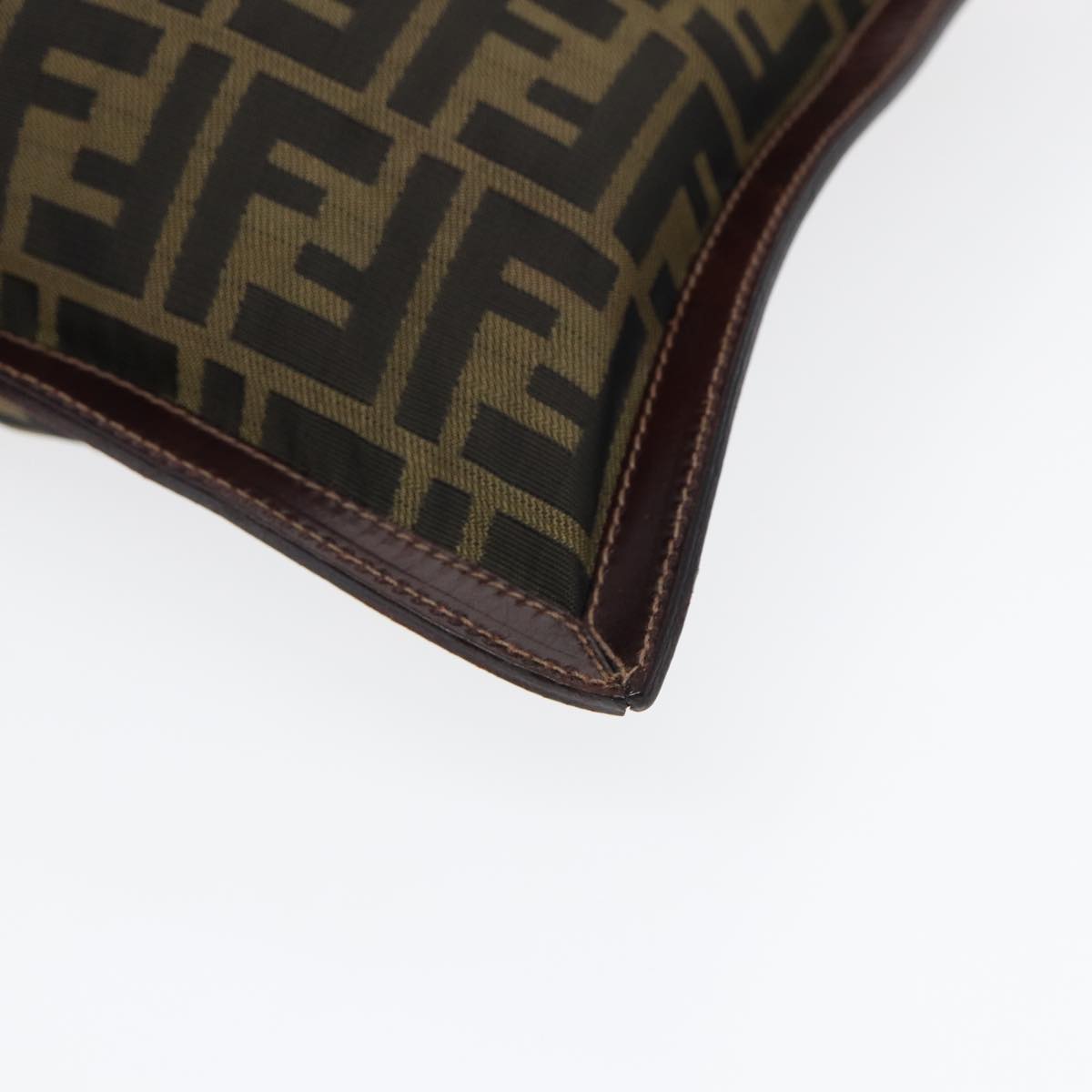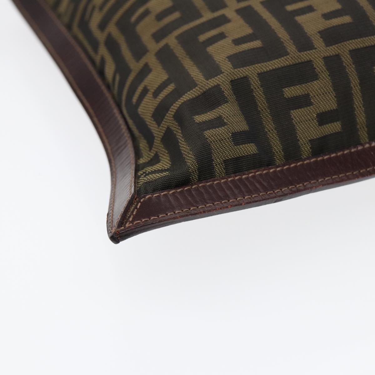FENDI Zucca Canvas Clutch Bag Brown Black gold Auth fm3776