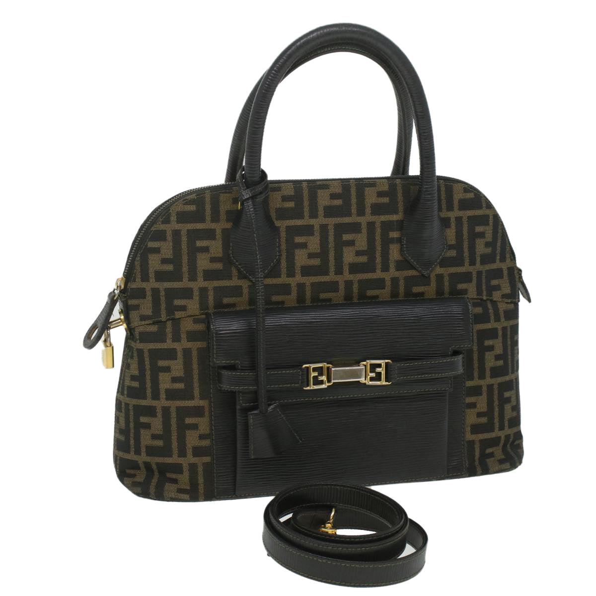 FENDI Zucca Canvas Hand Bag 2way Brown Black 35833