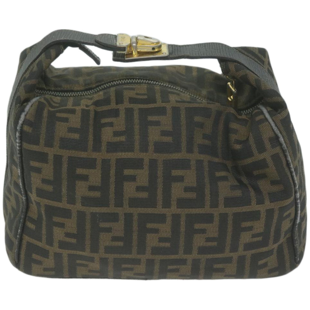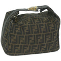 FENDI Zucca Canvas Hand Bag Black Brown Auth yk10697