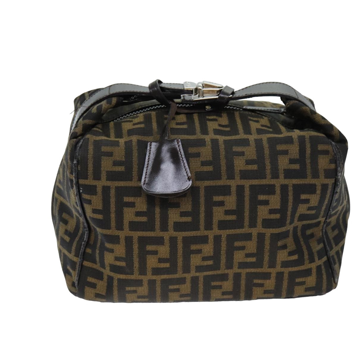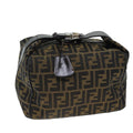 FENDI Zucca Canvas Hand Bag Black Brown Auth yk12930