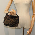 FENDI Zucca Canvas Hand Bag Brown Auth am6678