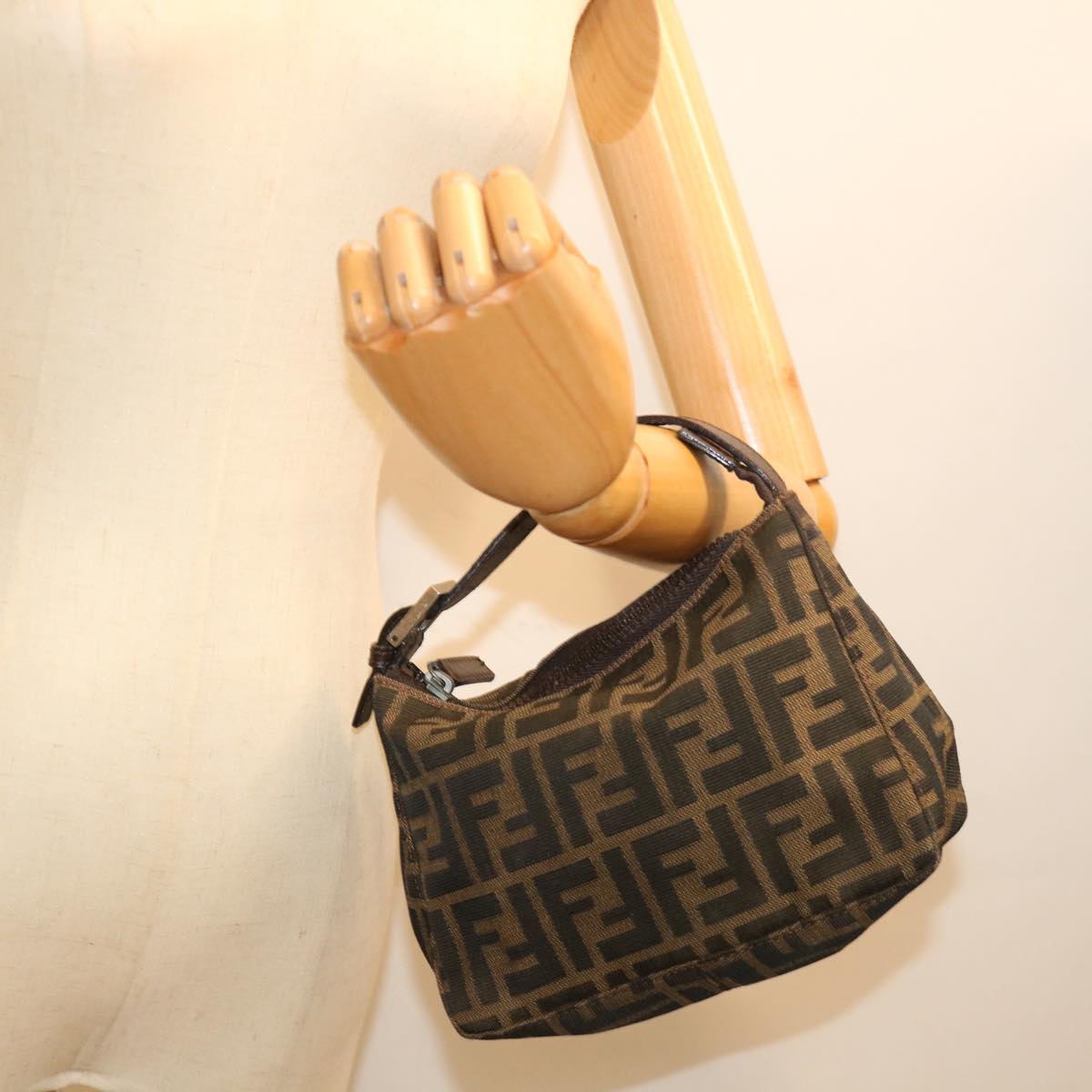 FENDI Zucca Canvas Hand Bag Brown Auth yk11812
