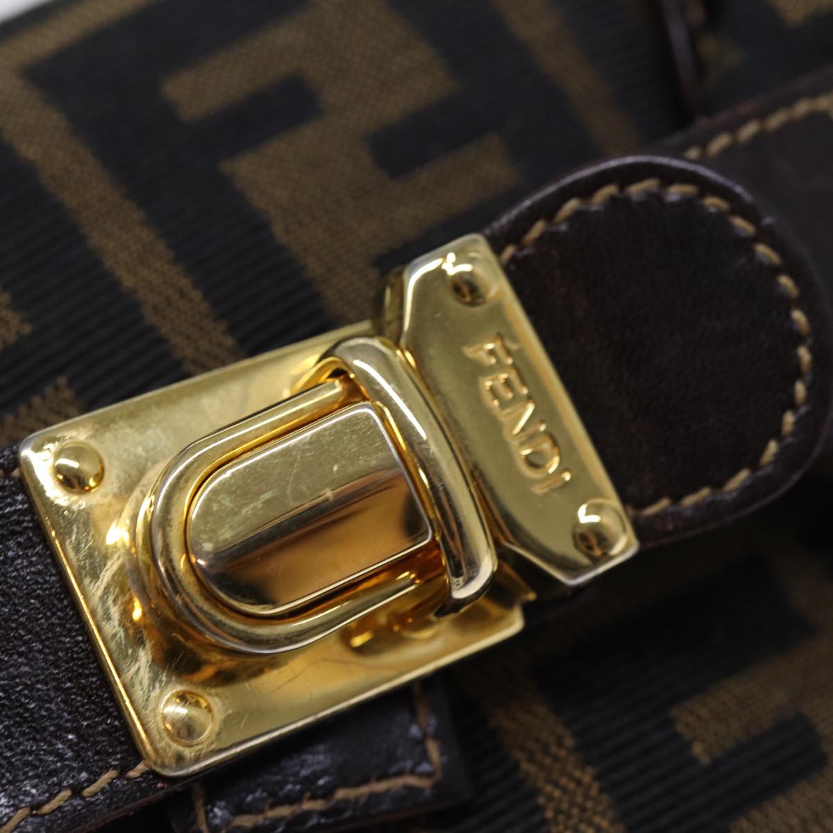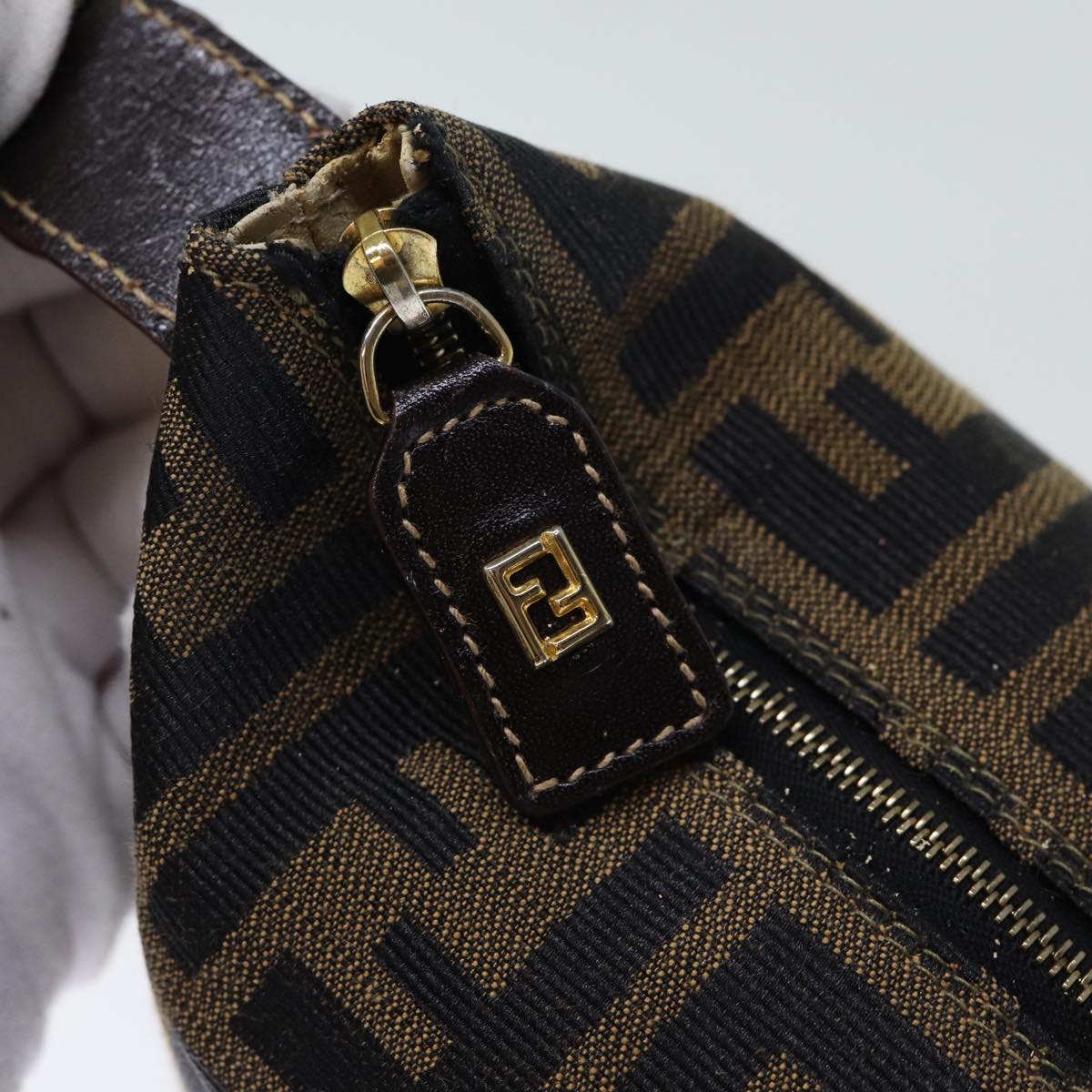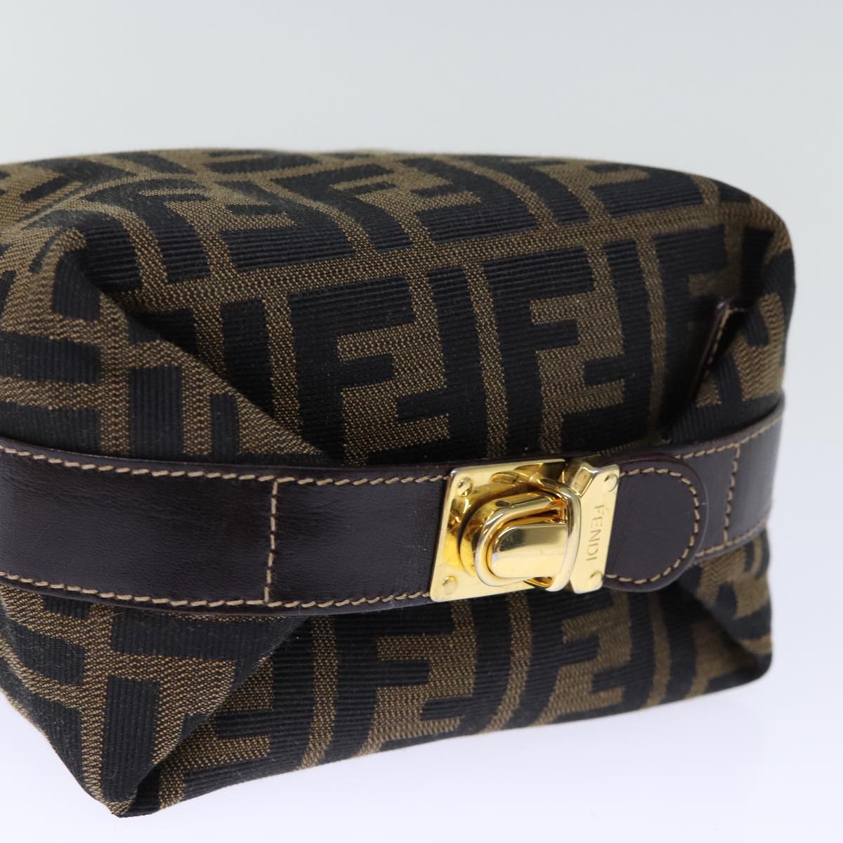 FENDI Zucca Canvas Hand Bag Brown Black Auth 72861