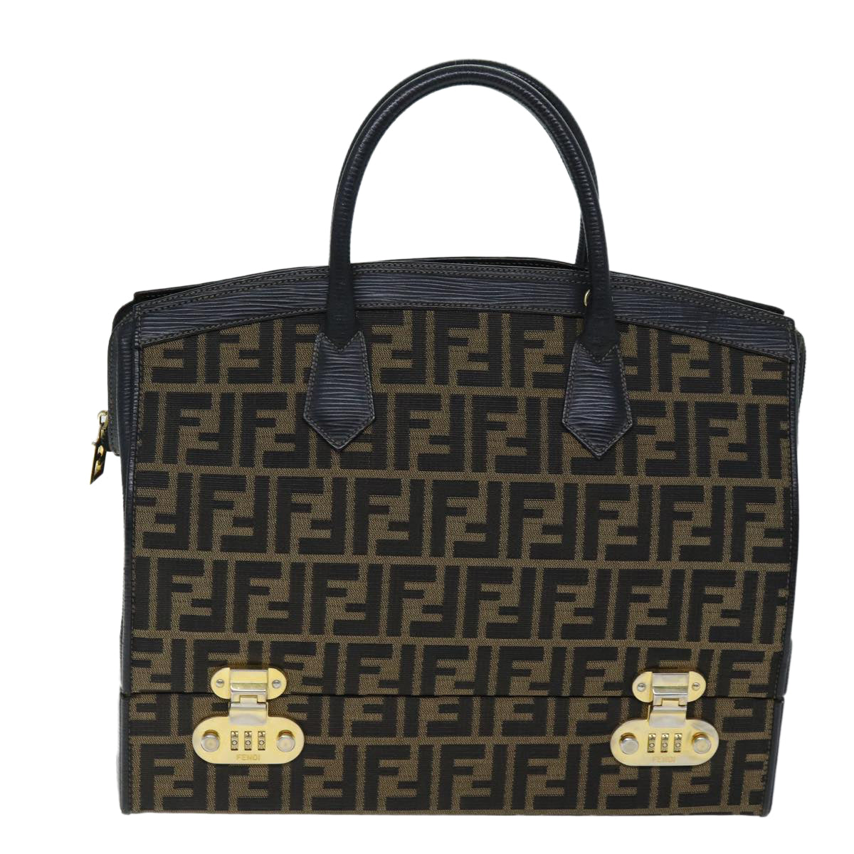 FENDI Zucca Canvas Hand Bag Brown Black Auth 74627