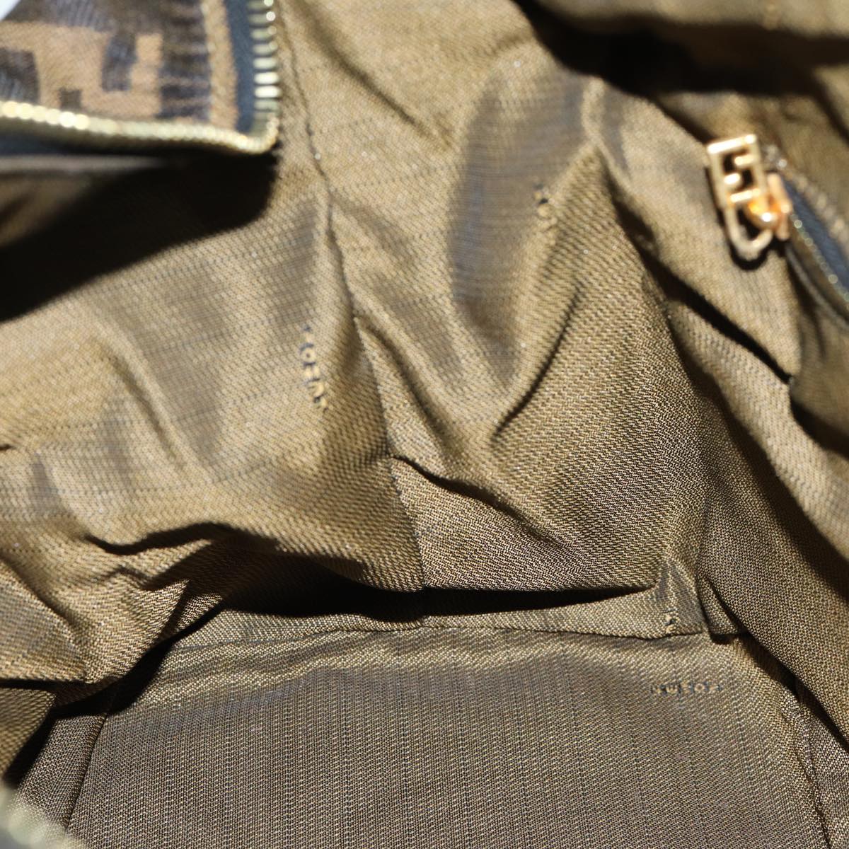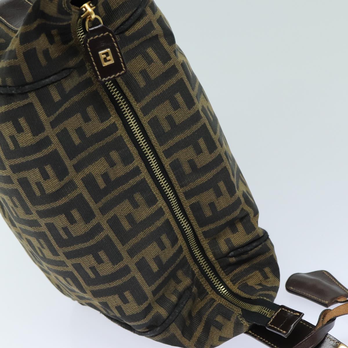 FENDI Zucca Canvas Hand Bag Brown Black Auth bs15990