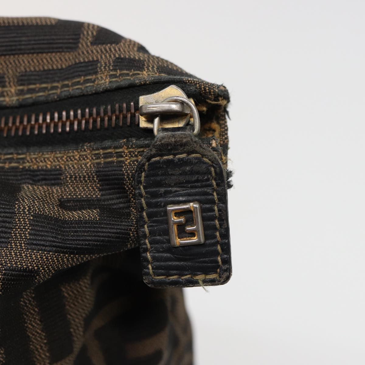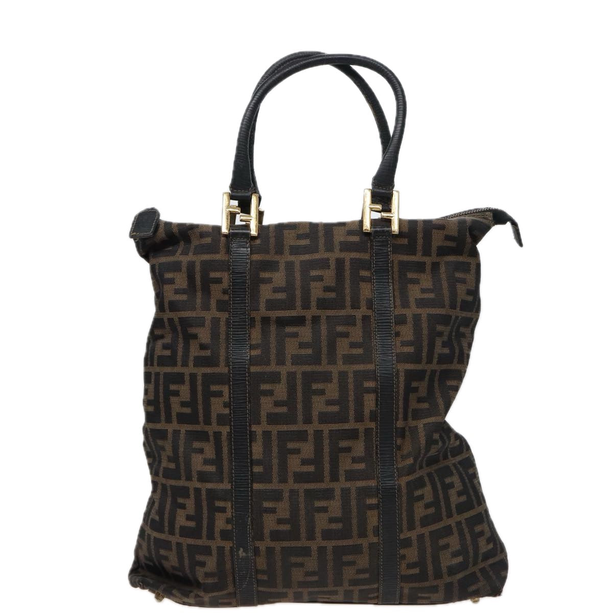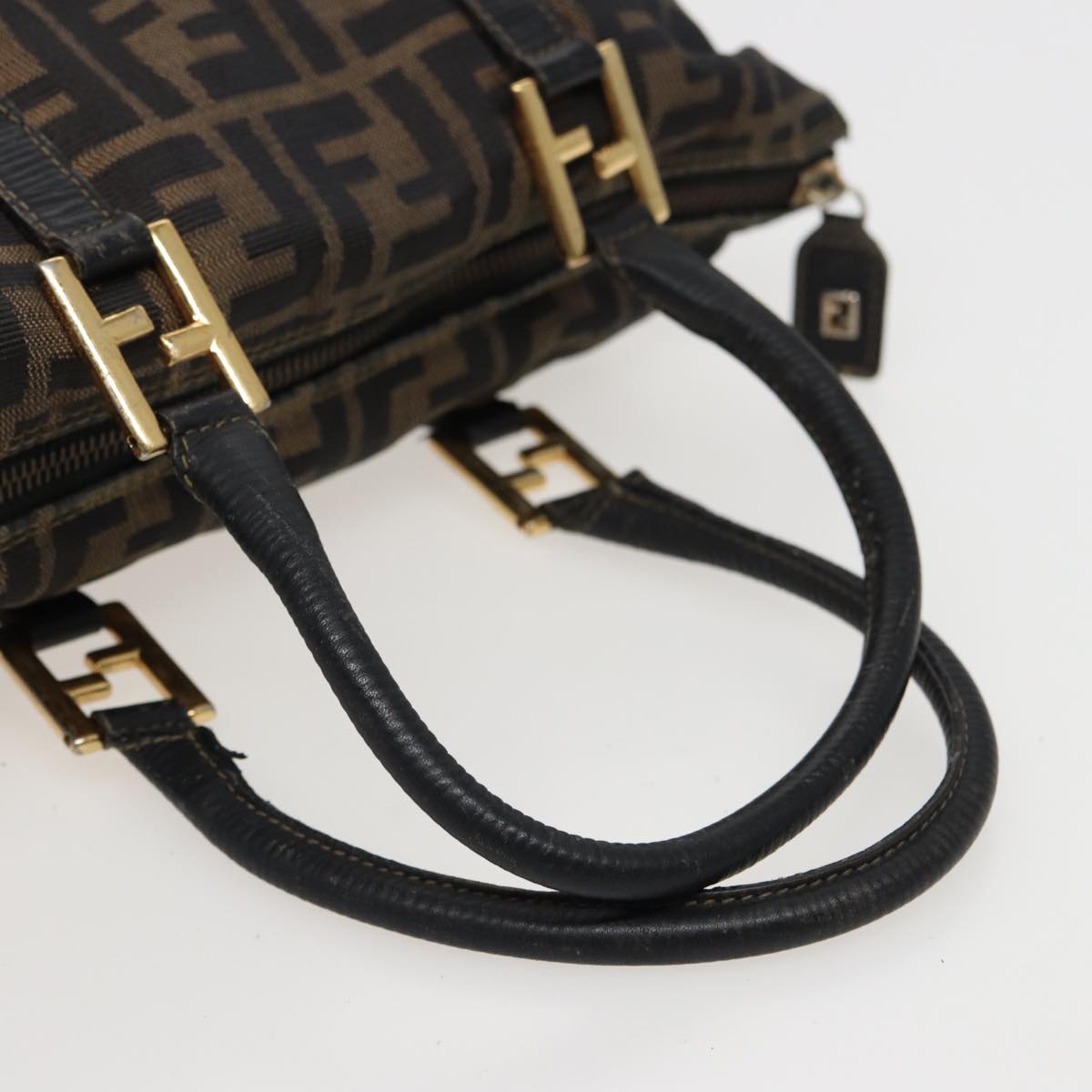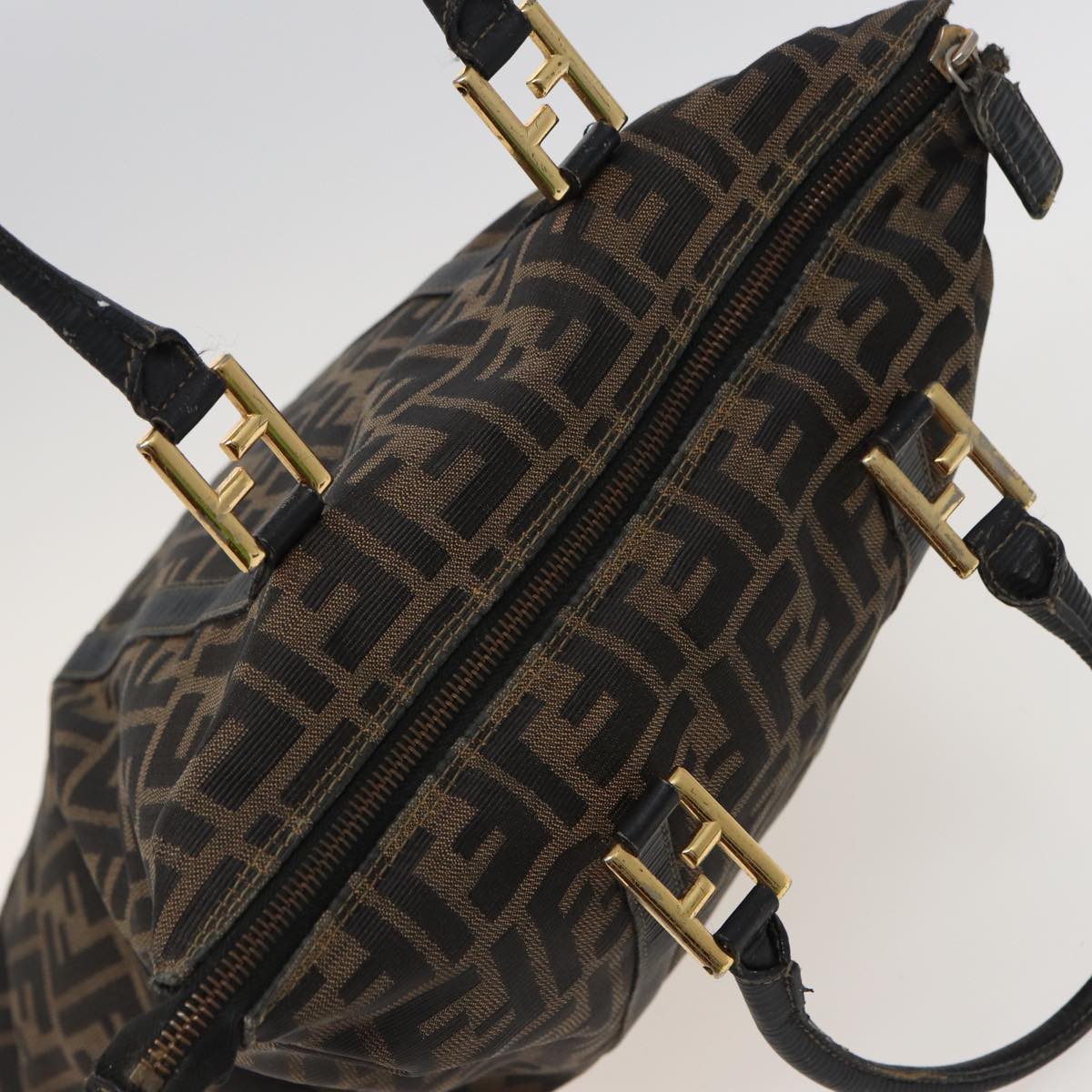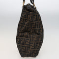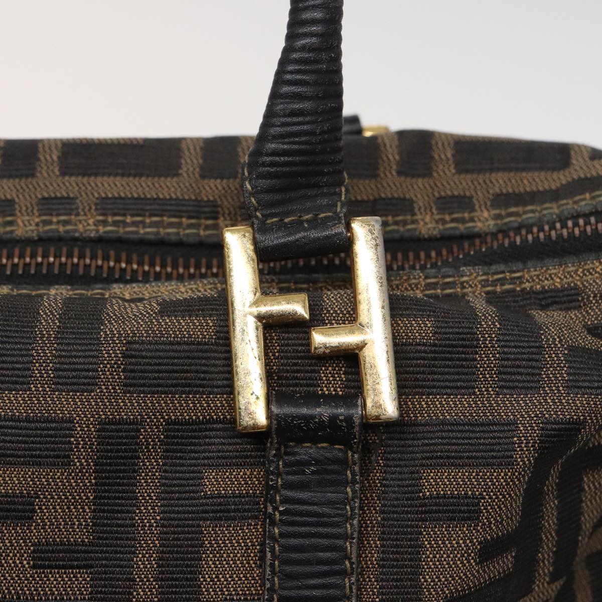FENDI Zucca Canvas Hand Bag Brown Black Auth mr305