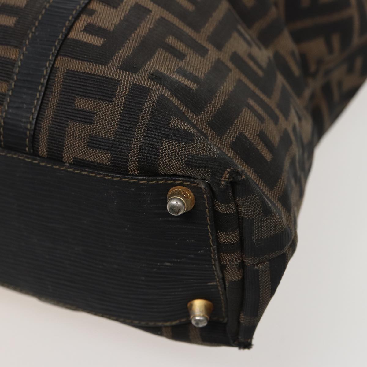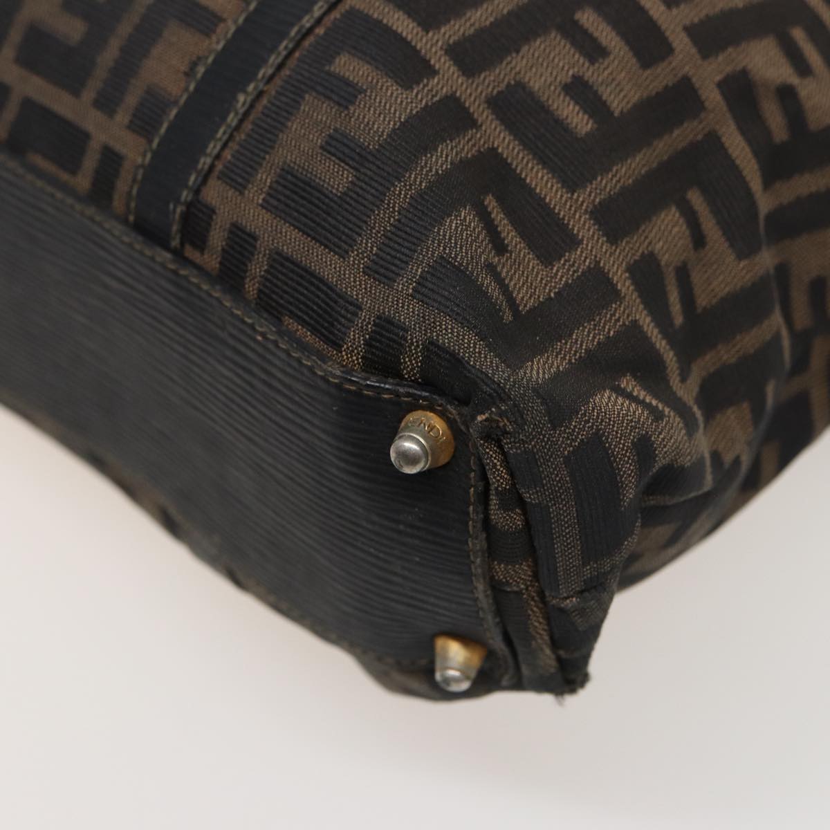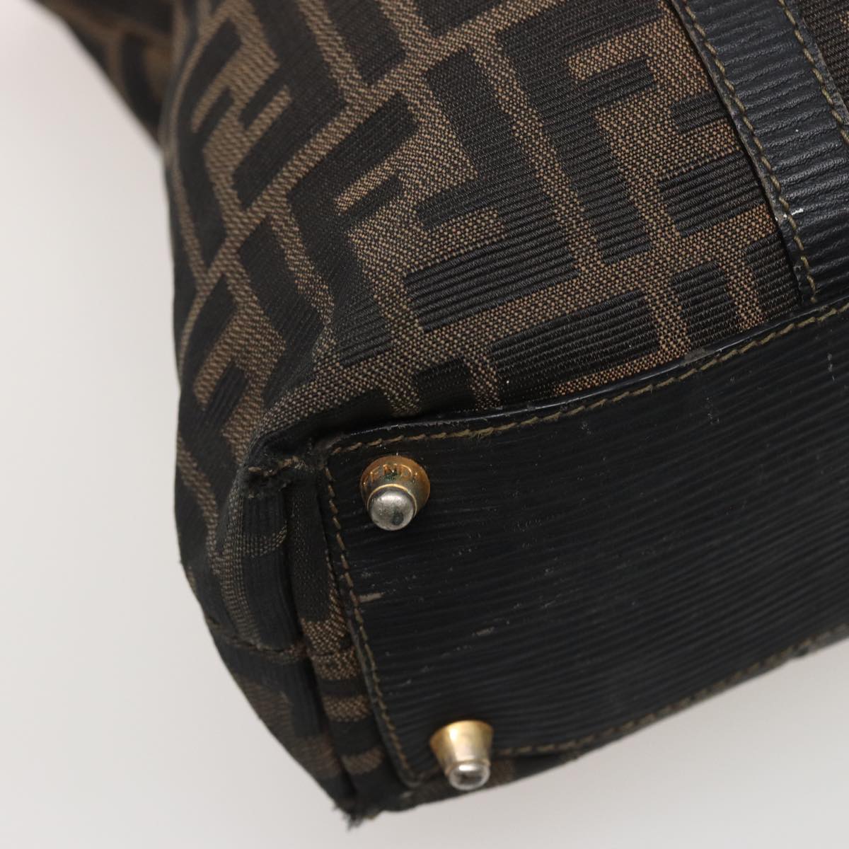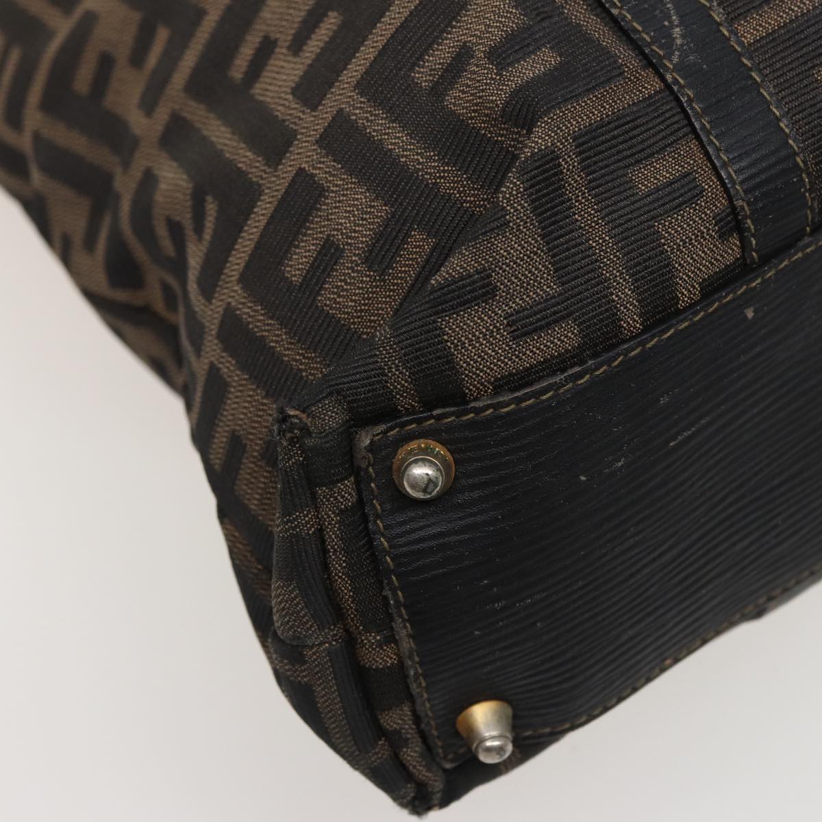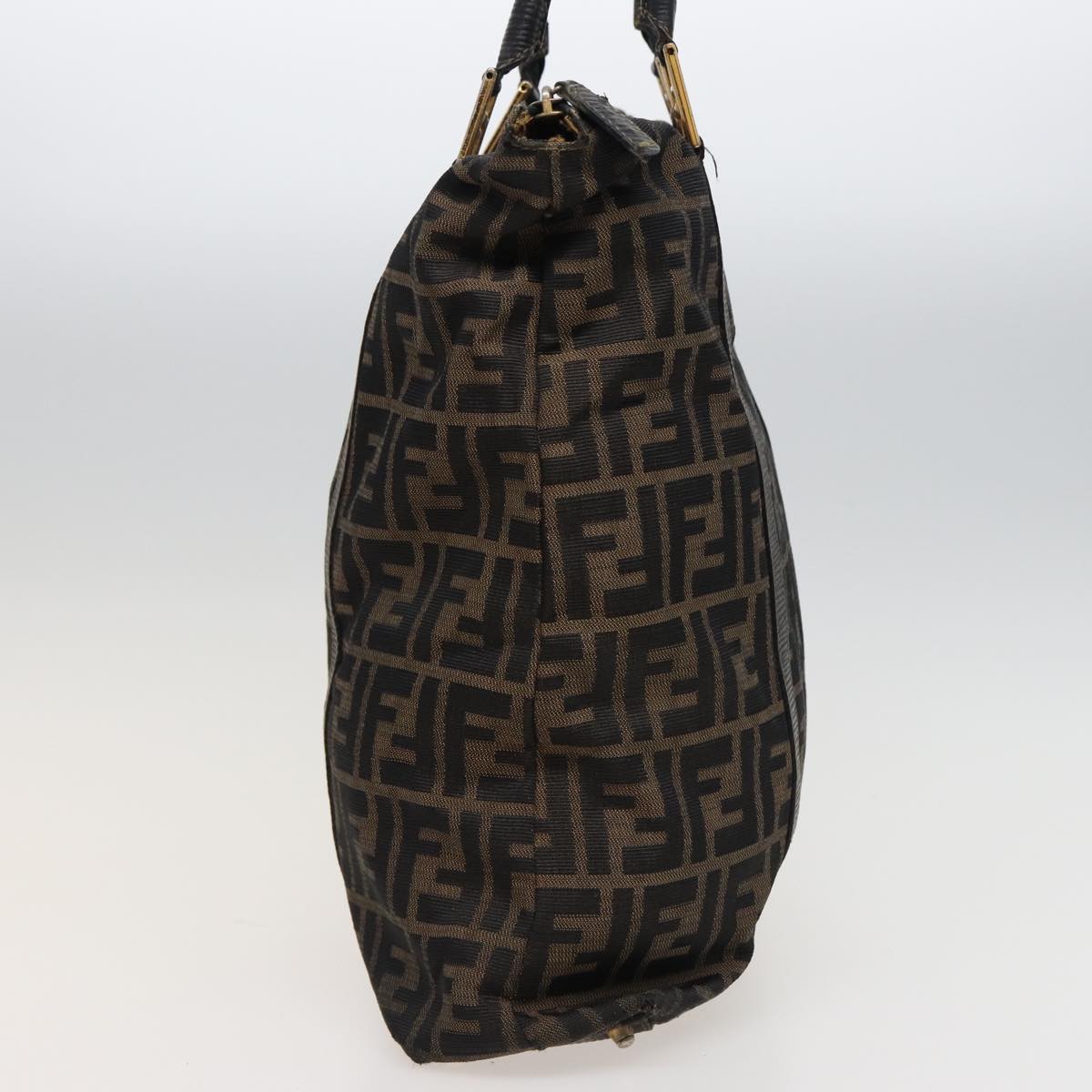 FENDI Zucca Canvas Hand Bag Brown Black Auth mr305