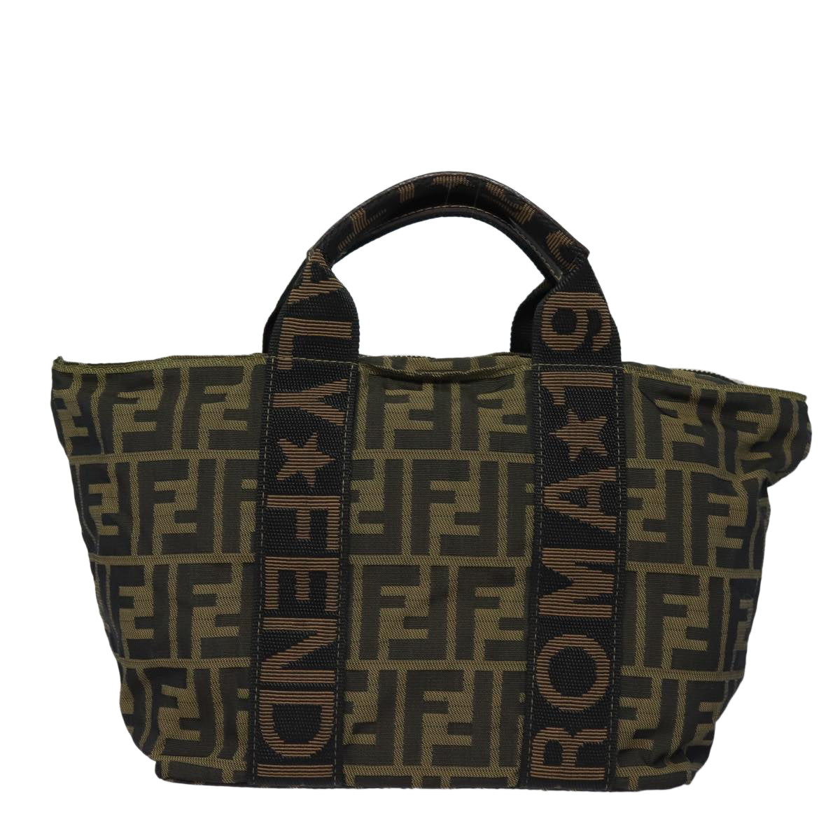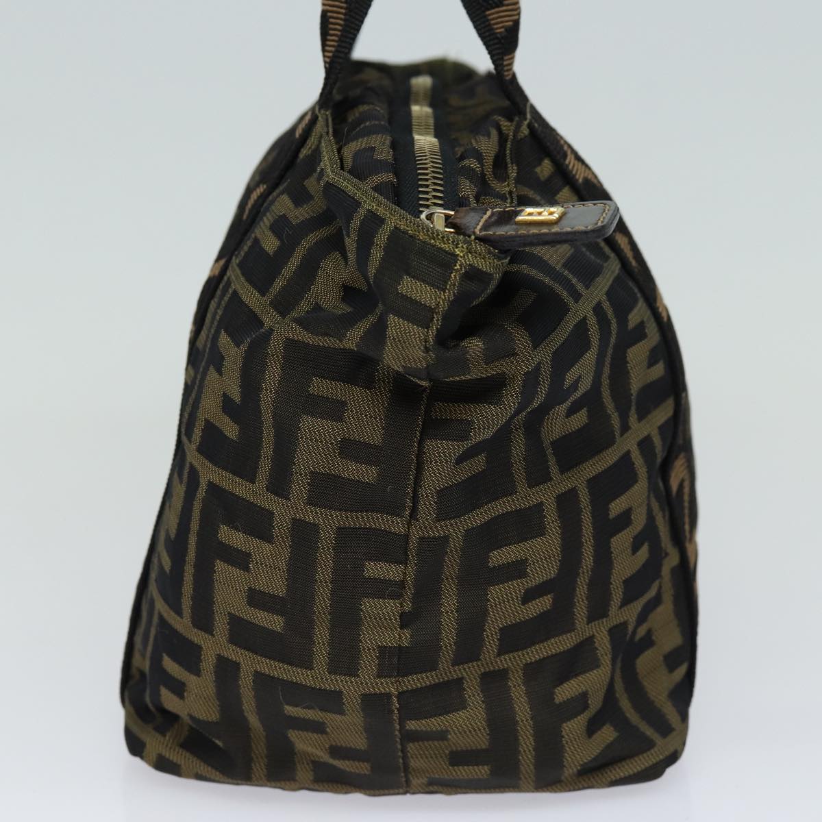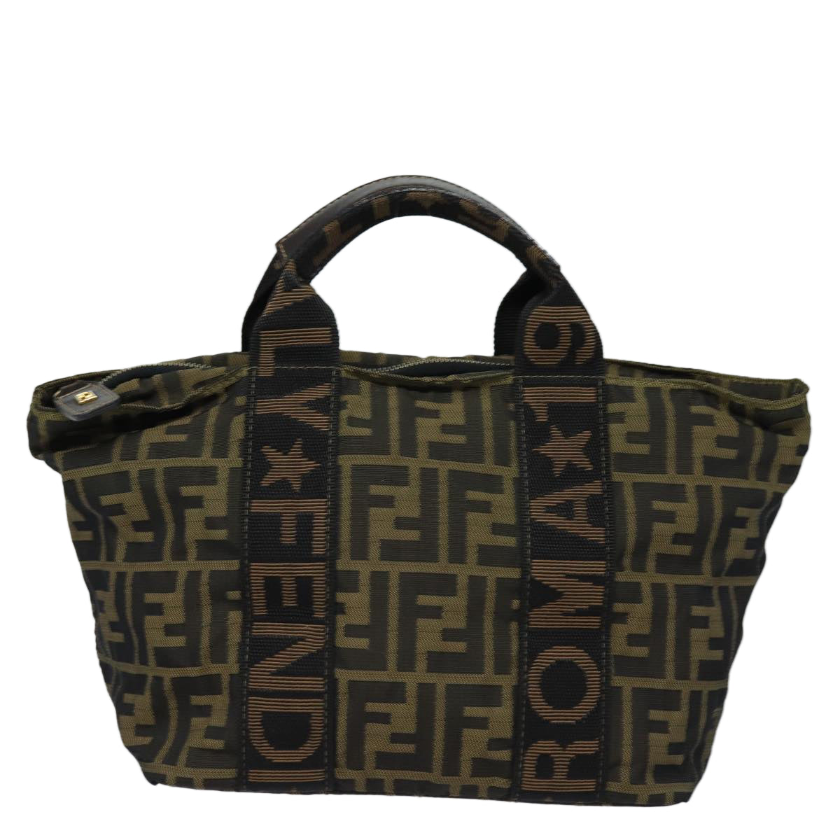 FENDI Zucca Canvas Hand Bag Brown Black Auth yk14062