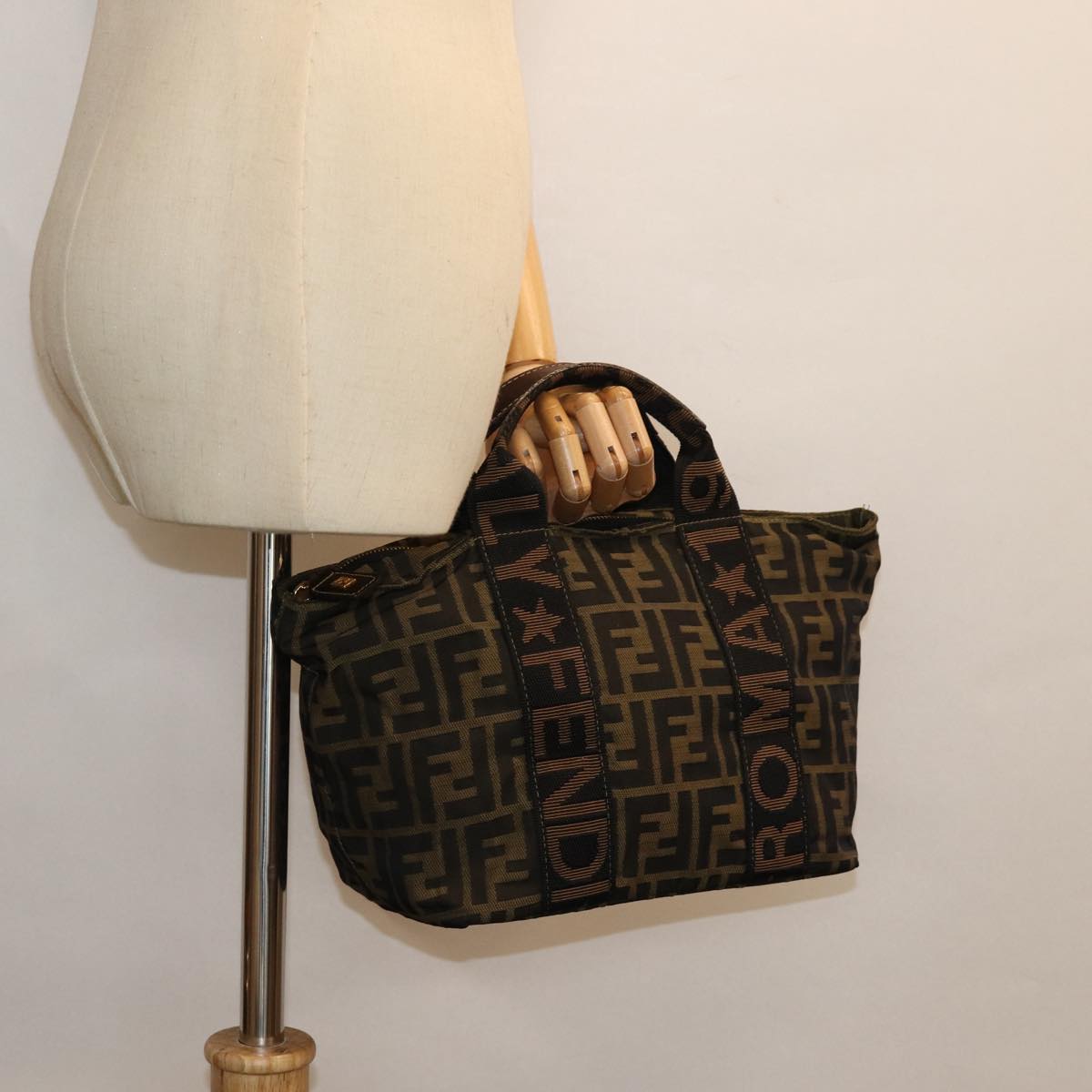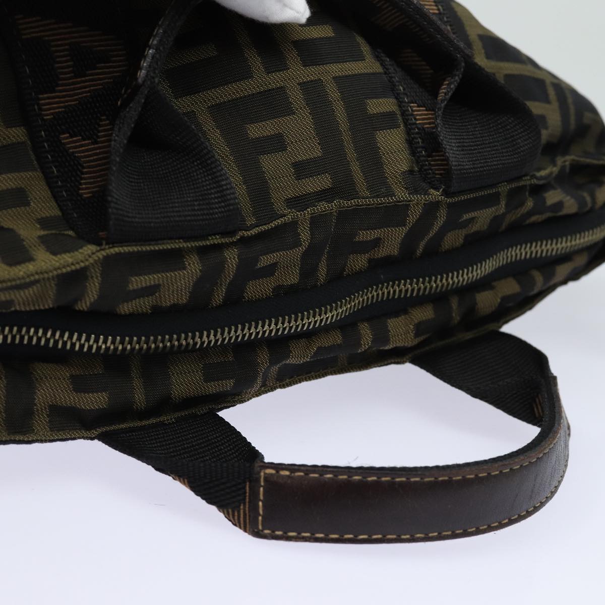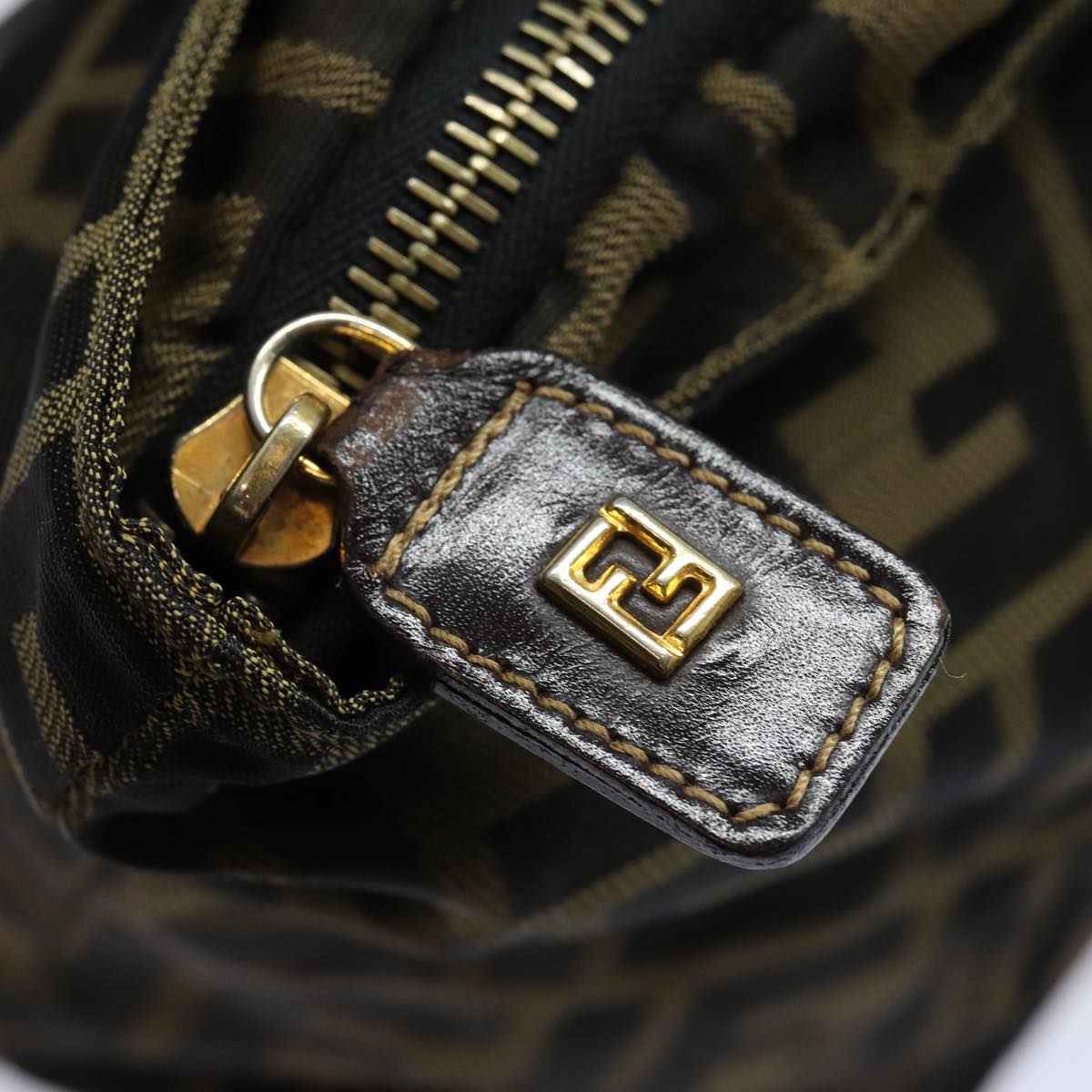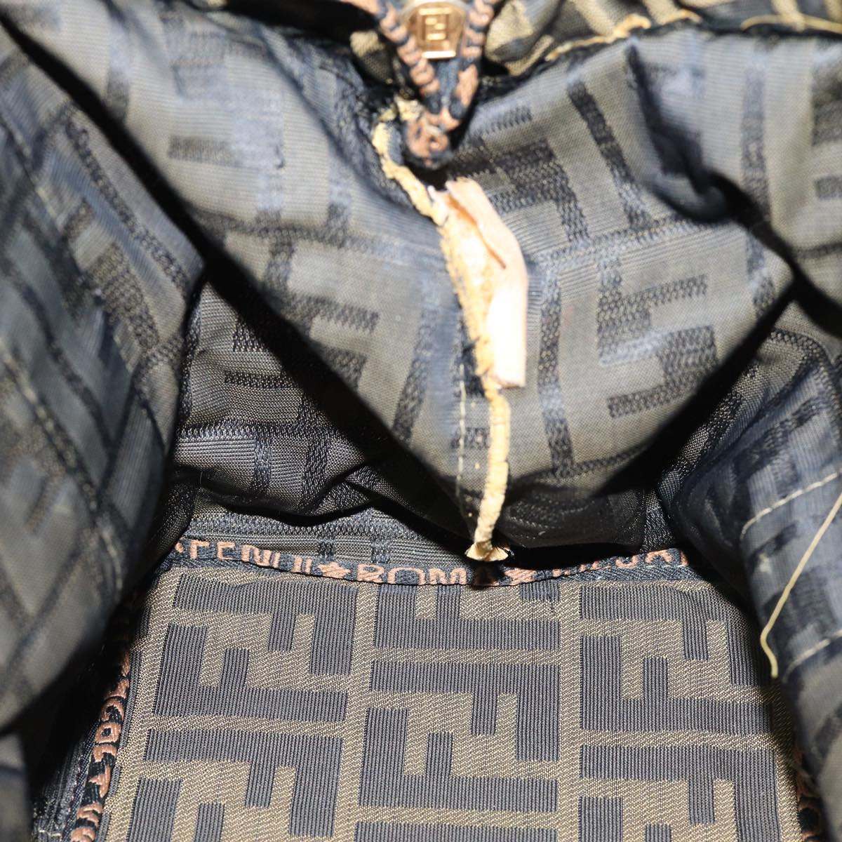 FENDI Zucca Canvas Hand Bag Brown Black Auth yk14062