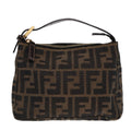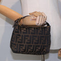 FENDI Zucca Canvas Hand Bag Brown Black gold Auth 84622