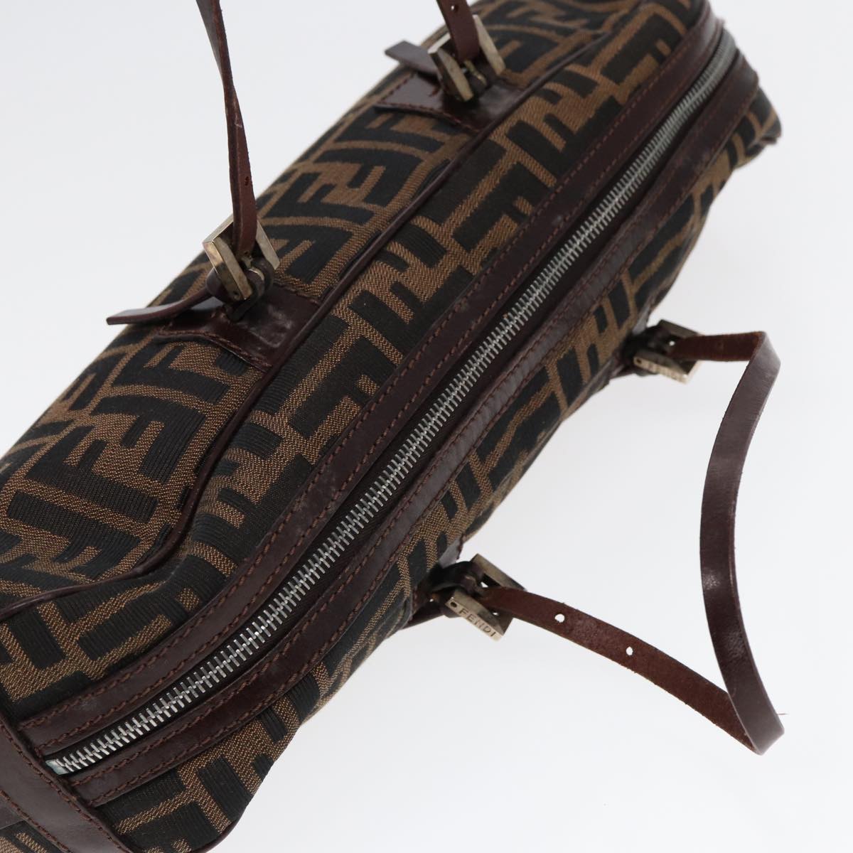 FENDI Zucca Canvas Hand Bag Brown Black Silver Auth 88785